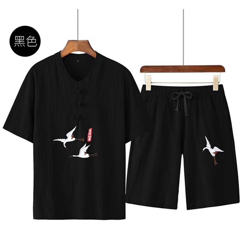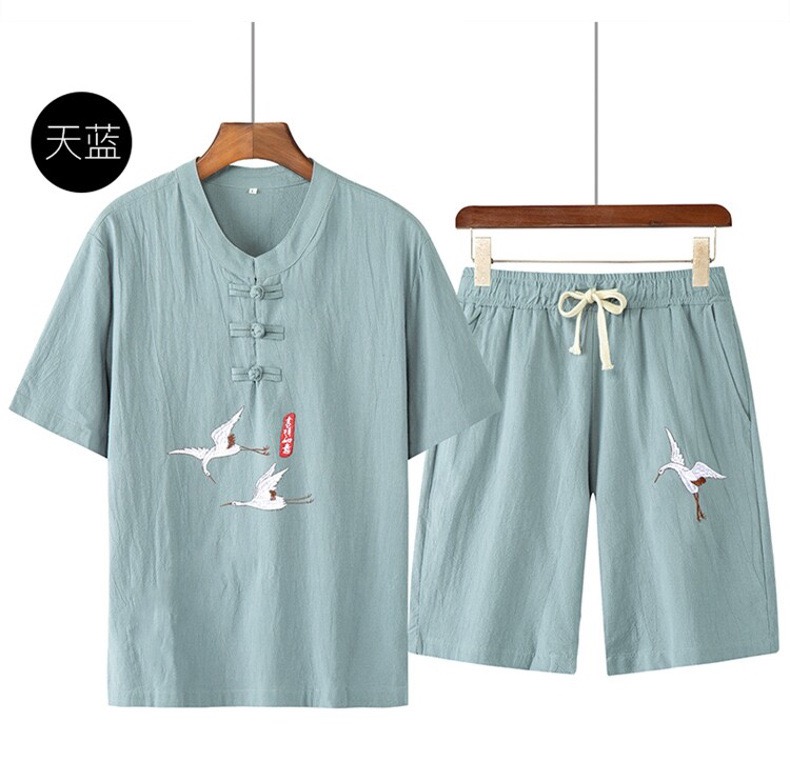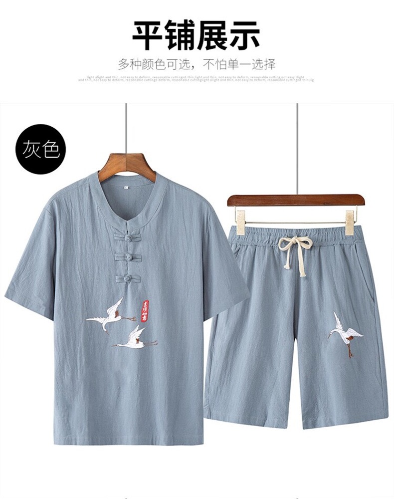 (清仓现货)【社群供X】国风刺绣棉质透气两件套爸爸装 100%棉