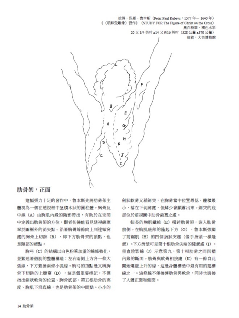 书中罗列的画作年代横跨500年,来自超过30位的艺术家,包括达文西、米开朗基罗、拉斐尔、鲁本斯、提香、林布兰、杜勒……等。每一幅作品皆以线图标示画作中的骨骼和肌肉结构,辅以启发性的剖析,带领读者探索解惑、深入堂奥,唤起自我觉察力与好奇心,是自学者不可多得的教程首选。