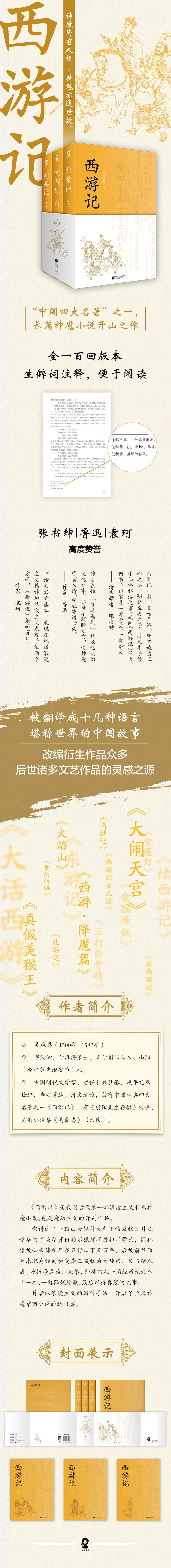 "★神魔皆有人情,精魅亦通世故。中国神魔小说开山之作。 ★“中国四大名著”之一,中小学生课外推荐阅读。 ★问世以来,改编衍生作品众多,后世诸多文艺作品的灵感之源。 ★同名电视剧曾荣获第8届中国电视剧飞天奖长篇连续剧特别奖。 ★被翻译成十多种语言,堪称世界的中国故事。 ★本次出版为全一百回版本,生僻词注释,便于阅读。"