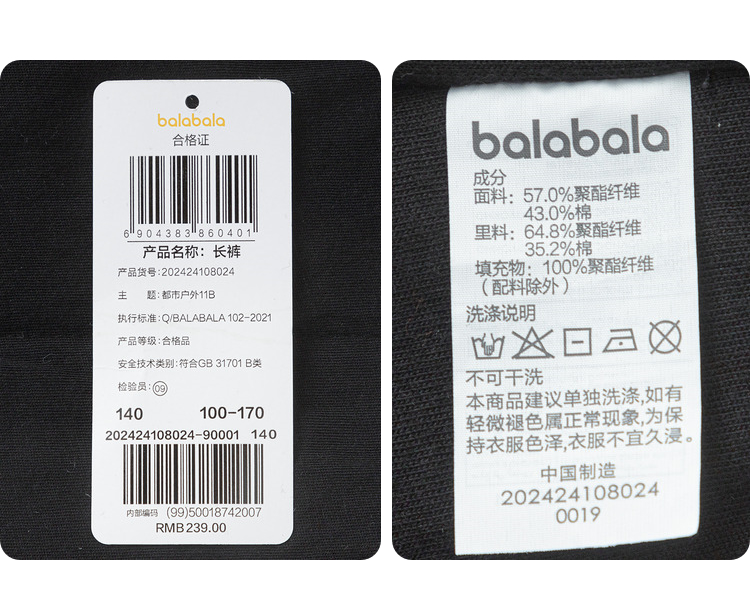 巴拉巴拉童装儿童裤子女童长裤秋冬装束脚裤洋气百搭休闲印花时尚