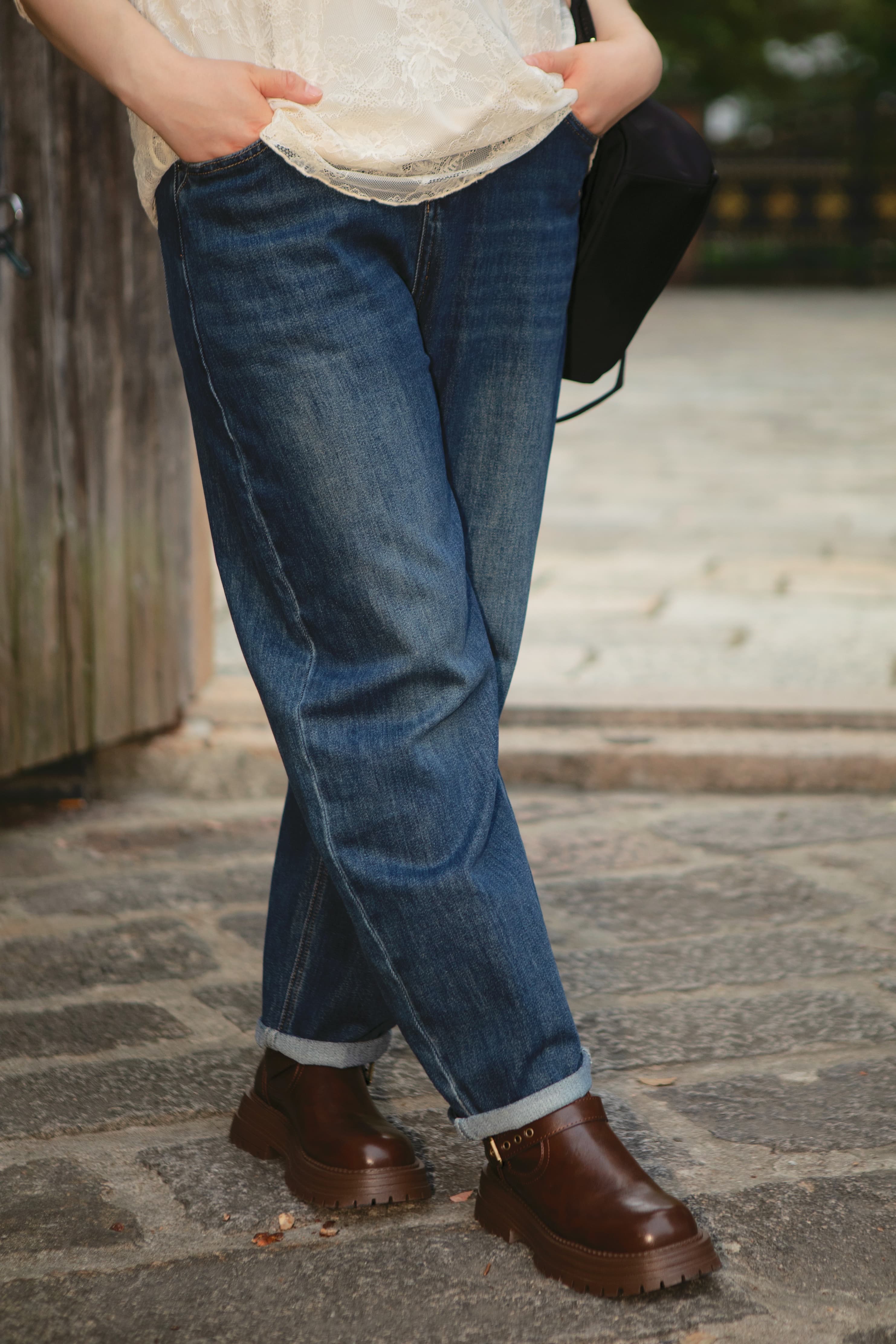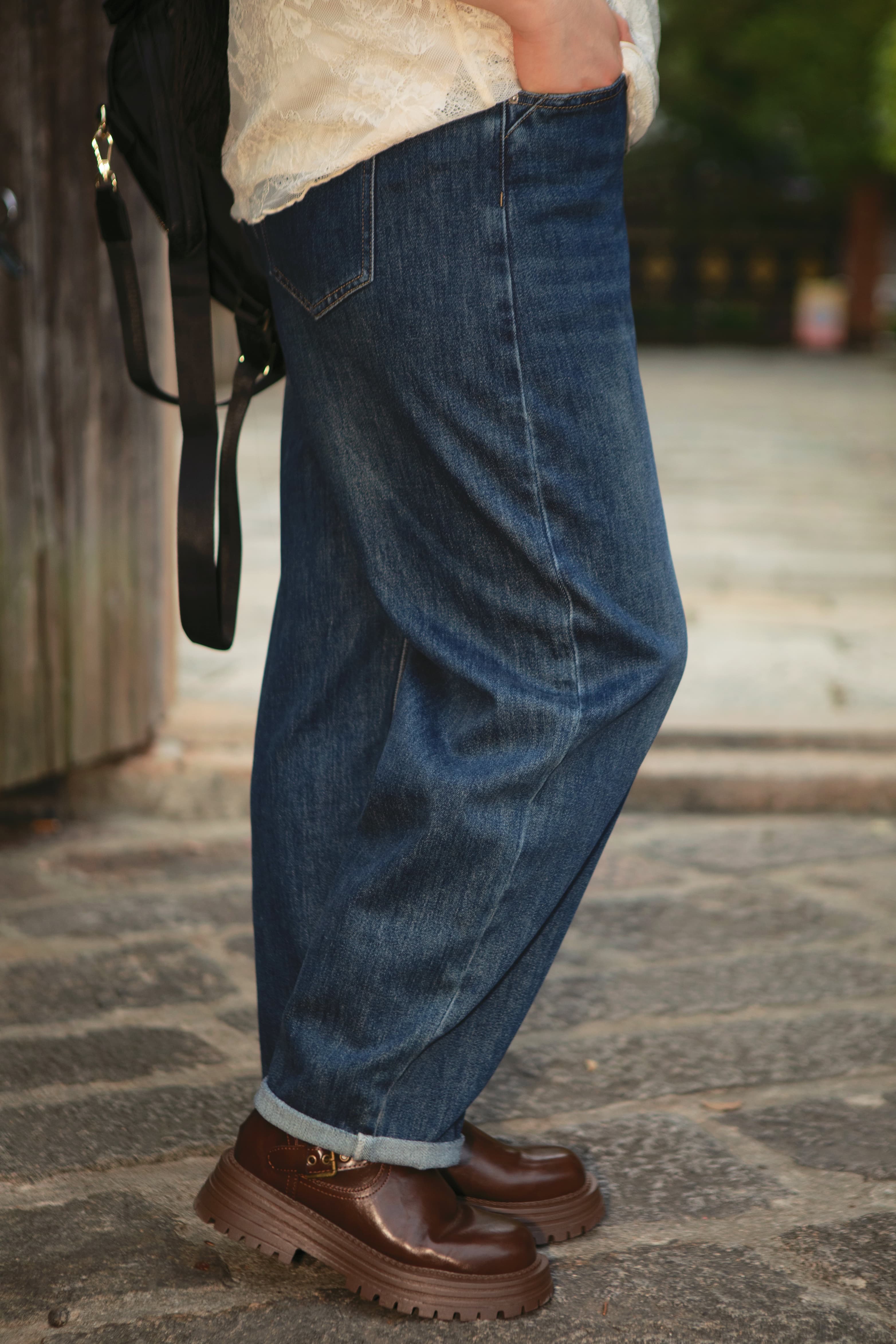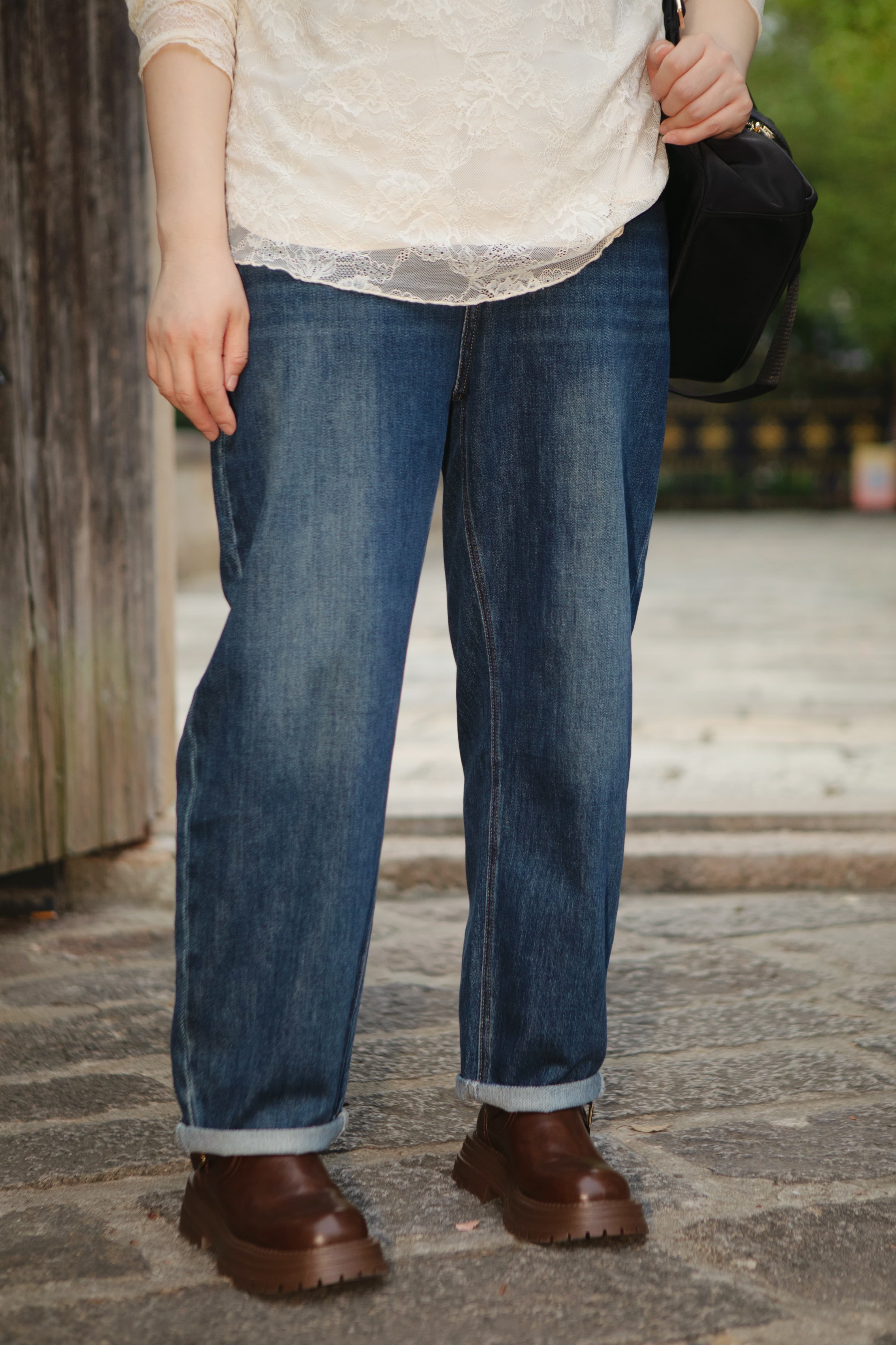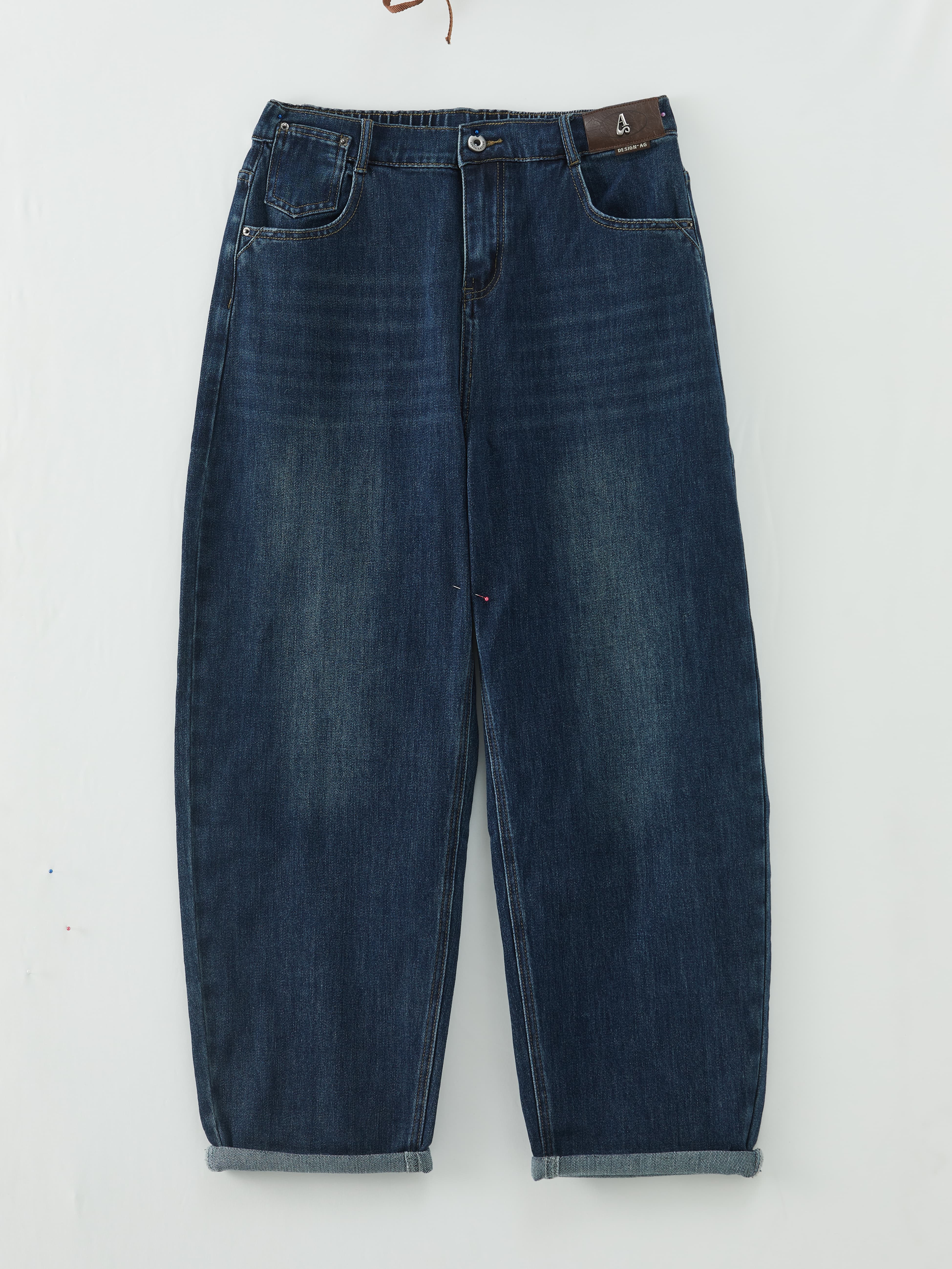 一周发货【版型非常好!牛仔老爹裤】后松紧腰,经典牛仔深蓝色系,百搭不挑人!宽松阔腿版型,显瘦显高一级棒,时尚休闲感拉满~