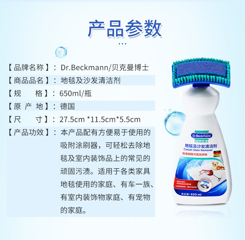 650ml*2瓶 贝克曼地毯和沙发清洁剂【伊藤优选302209】