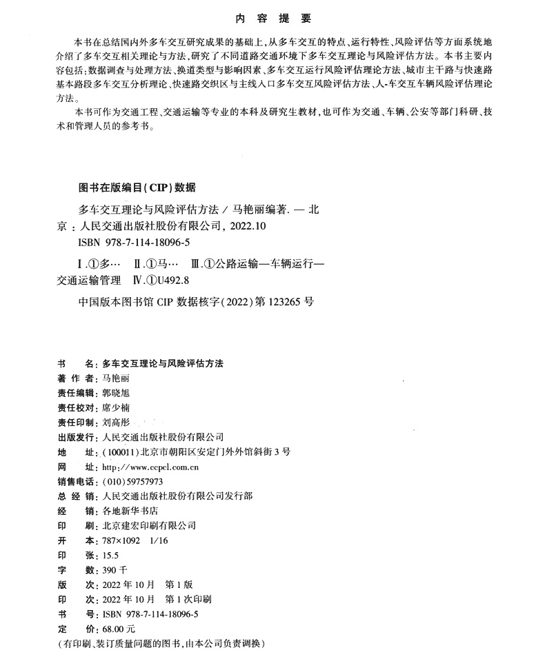 书名:多车交互理论与风险评估方法