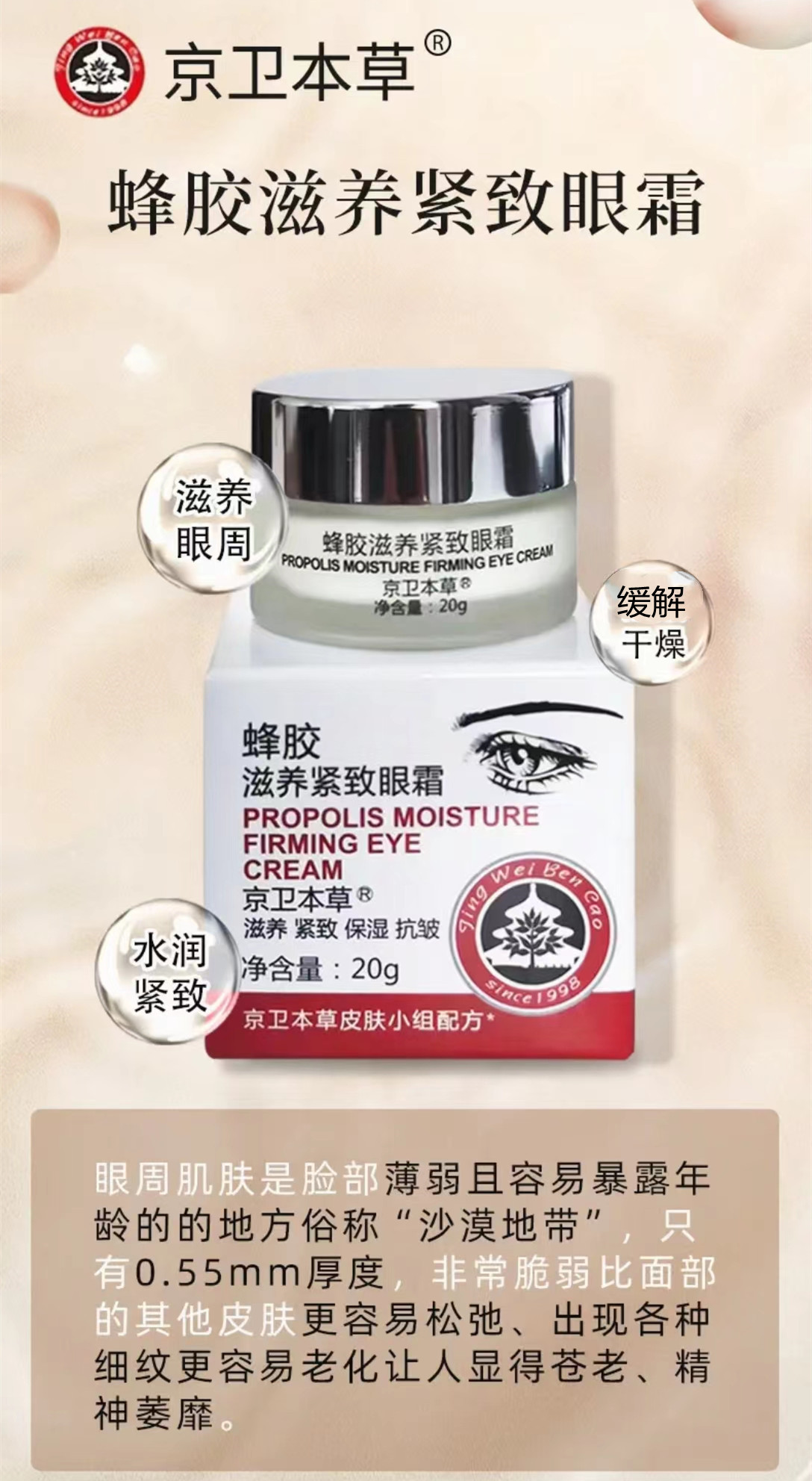 北京301医院京卫本草蜂胶滋养紧致眼霜20g 军事医学皮肤专家研制 质感细腻 迅速吸收,适用于各种皮肤