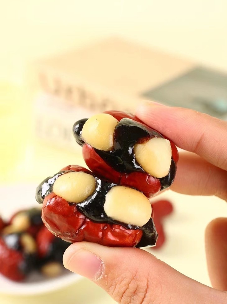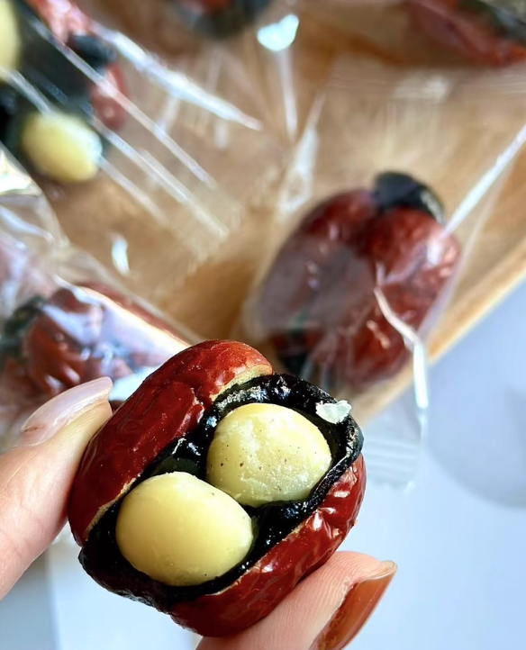 第一次吃!!!此枣惊为天人 好吃的零食千千万 这个枣子很🉐️我心~ 手工制作暴富枣 里面还有脆脆的夏威夷果 一口下去可以吃到好几种味道~ 完全没有想象中的甜腻感~ 糯叽叽的巨香 重点是好吃还不上火! 一口一个,又香又脆!完全停不下来!