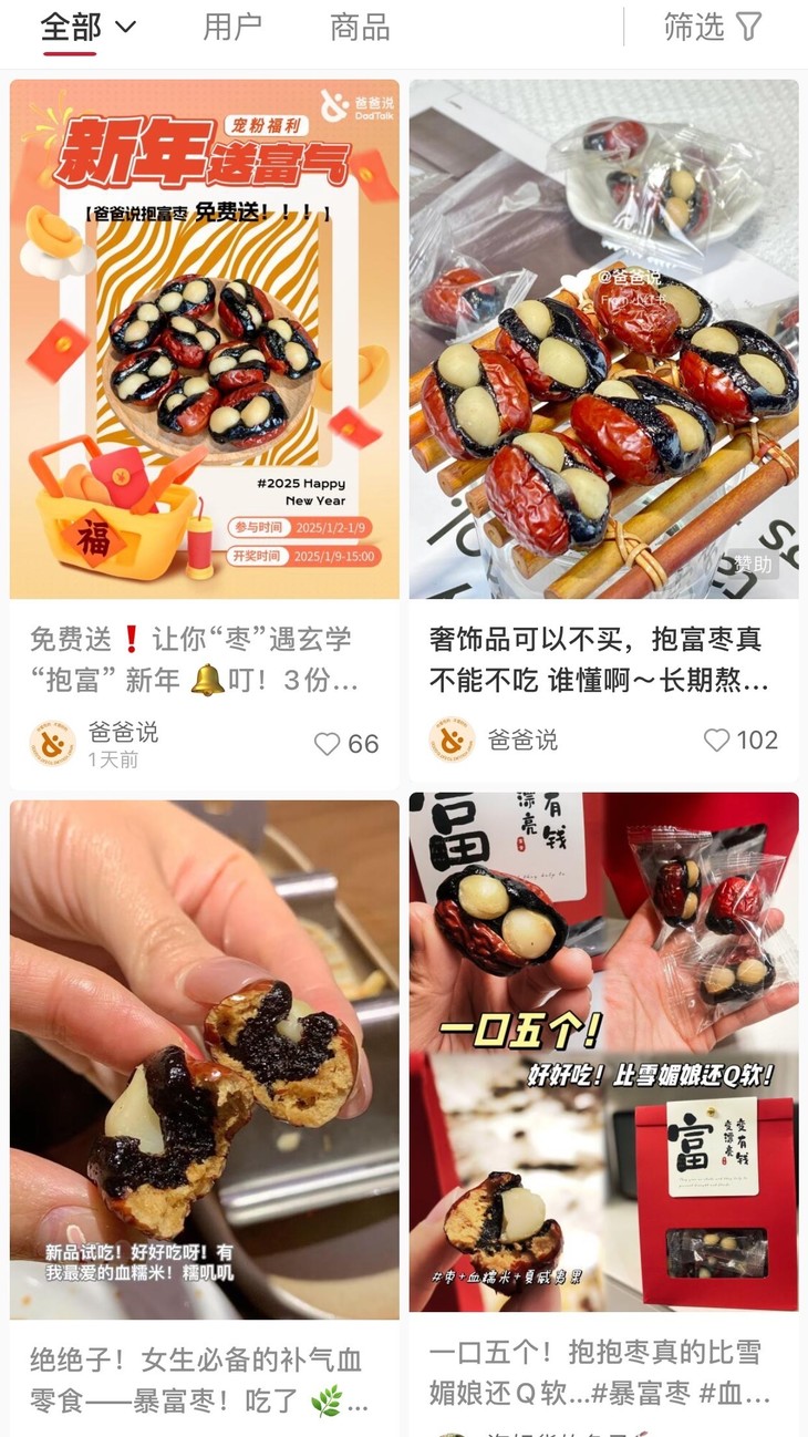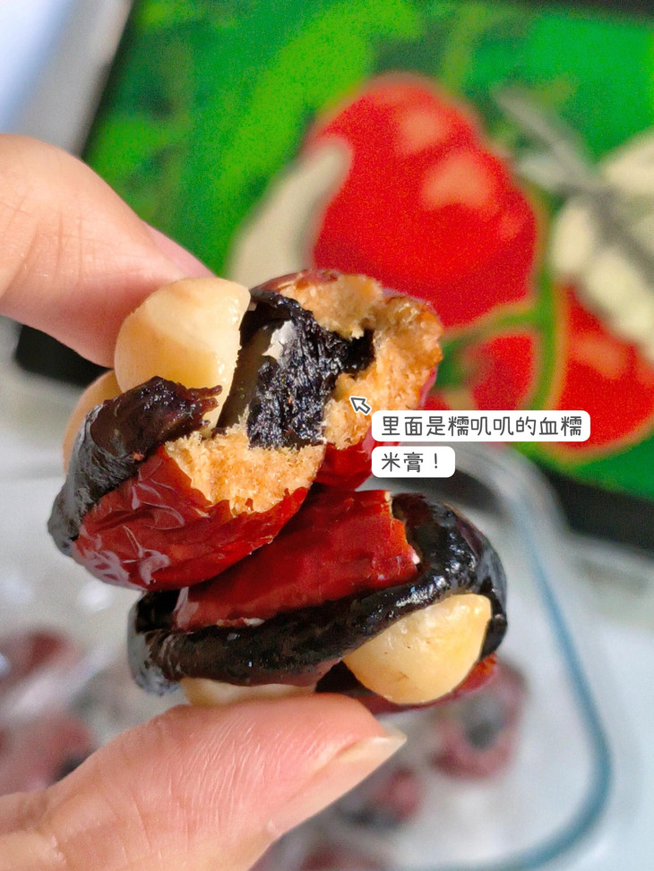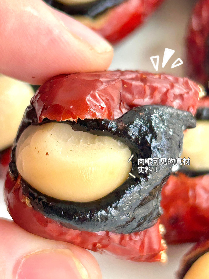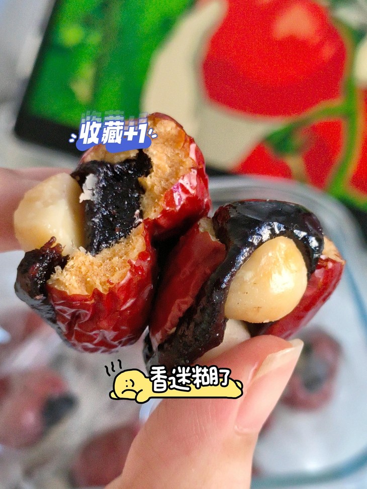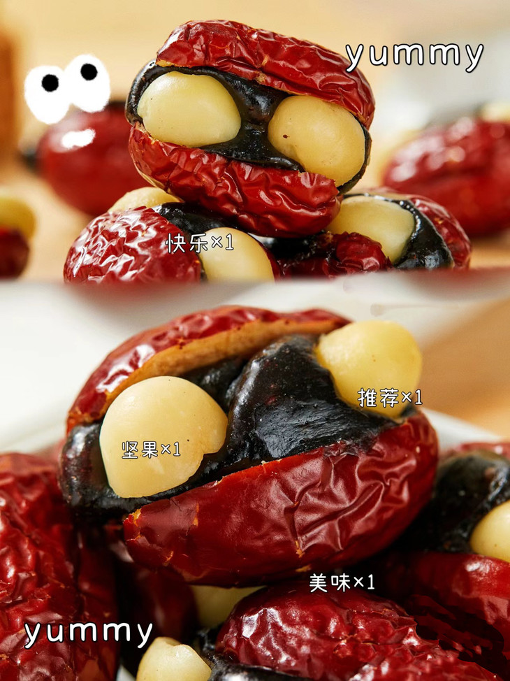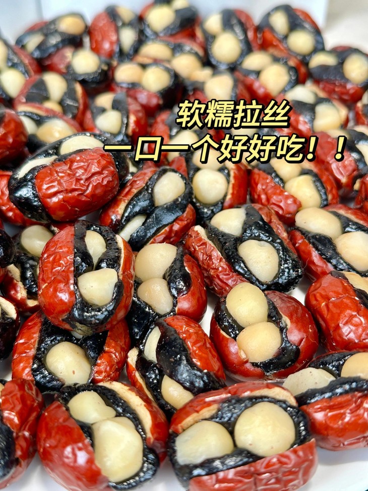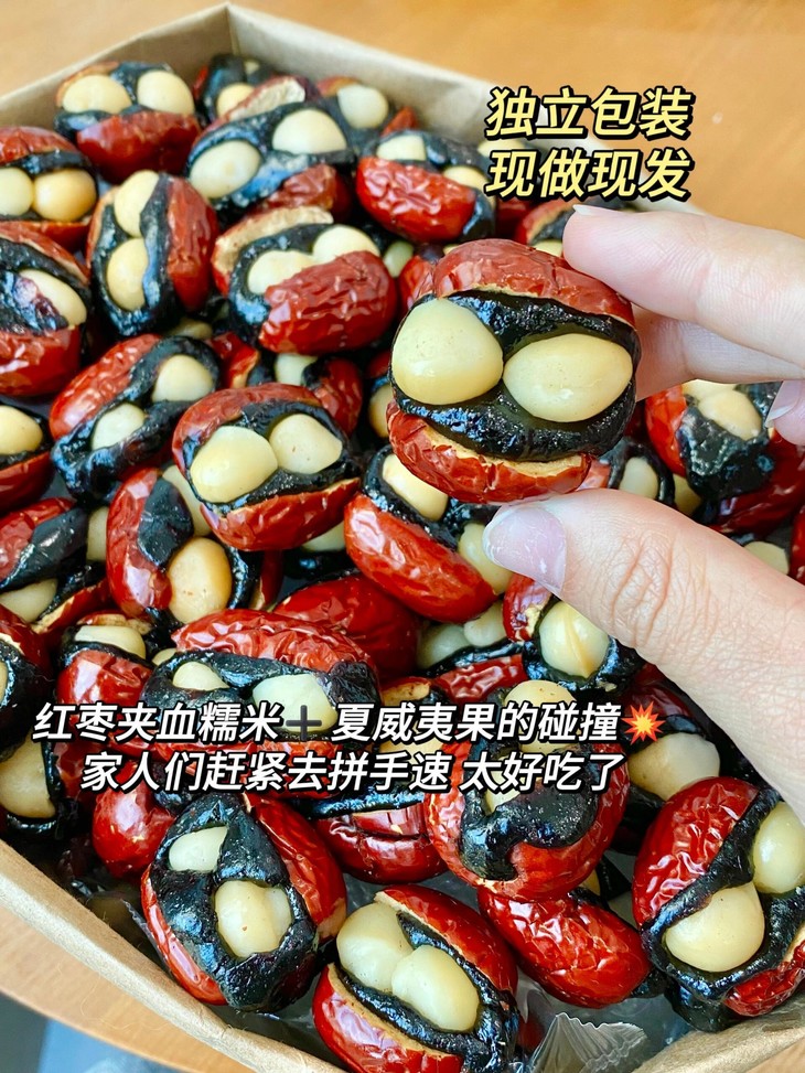 人生何求,我就求暴富自由😎哈哈哈哈哈~ 谁懂啊!第一次吃暴富枣就爱上了! 纯手工制作的幸福枣 纯手工熬制血糯米馅料 超大颗去核红枣+糯叽叽血糯米+大颗夏威夷果仁 红枣中间包裹血糯米和夏威夷果 一口下去红枣的香甜 血糯米的软糯以及夏威夷果的香脆 一口下去糯叽叽的感觉太妙了!