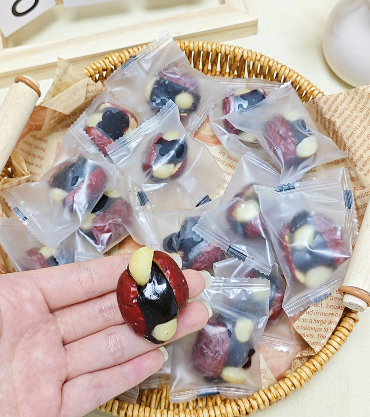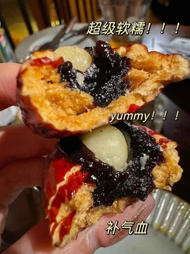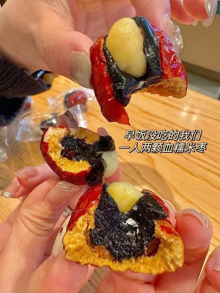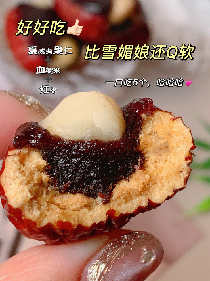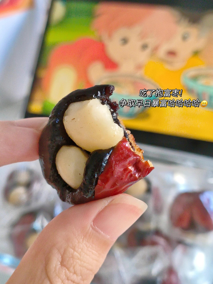这么好吃的东西我怎么才发现啊!! 第一次吃就直接爱上了 这个暴富枣!好新奇的名字 红枣+血糯米+夏威夷果的搭配 一口下去好满足 糯叽叽的口感真的吃不腻
