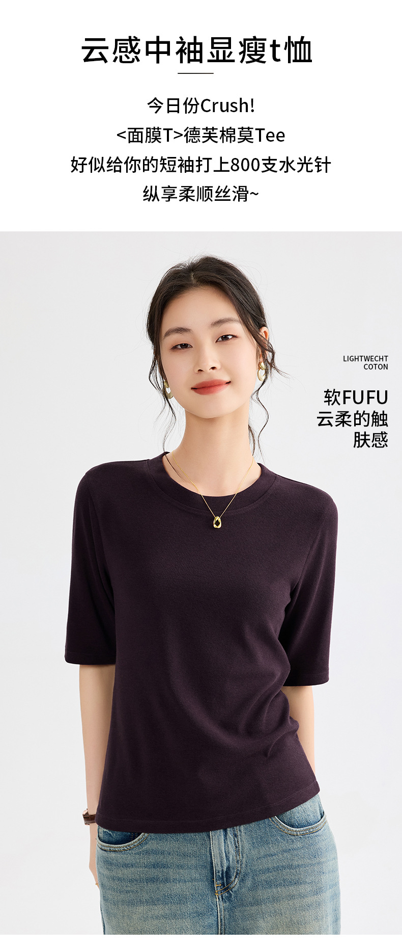 【109元2件】【大牌专柜品质】夏季云朵中袖显瘦面膜T恤 柔软亲肤吸湿透气上衣