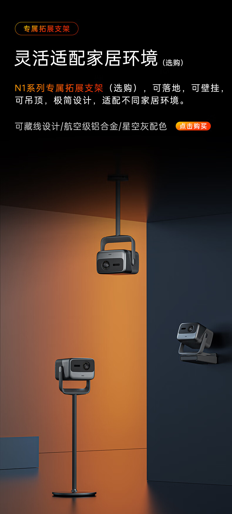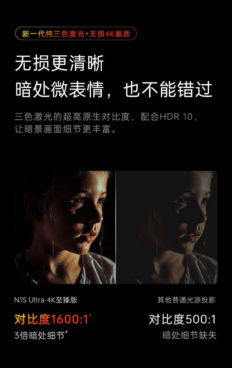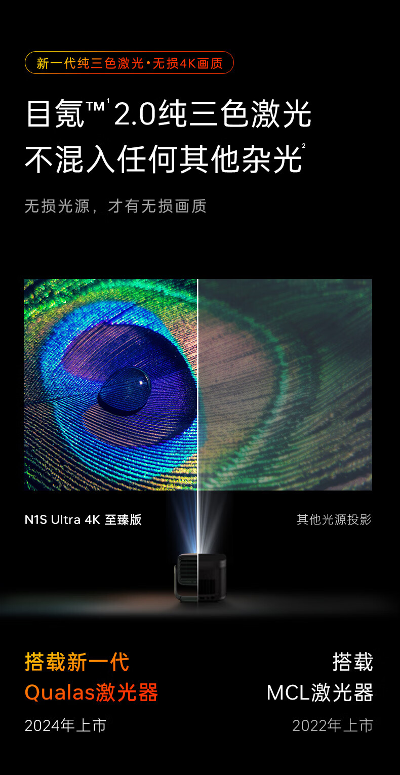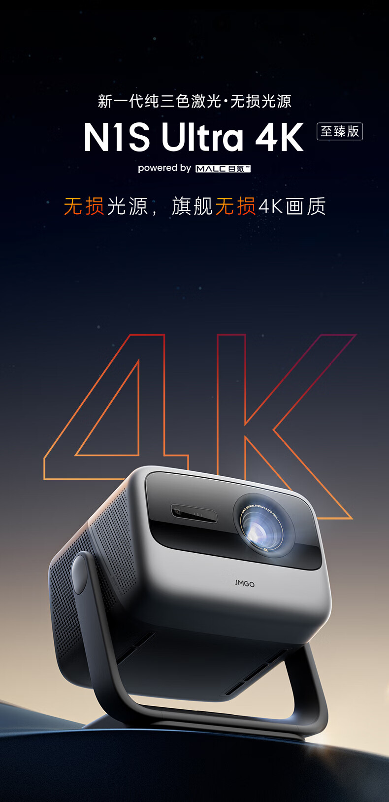 坚果投影(JMGO)N1S Ultra 4K至臻版 超高清三色激光云台投影仪家用家庭影院(升级3500CVIA+新一代无损三色激光)