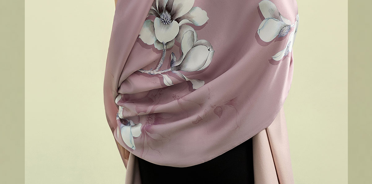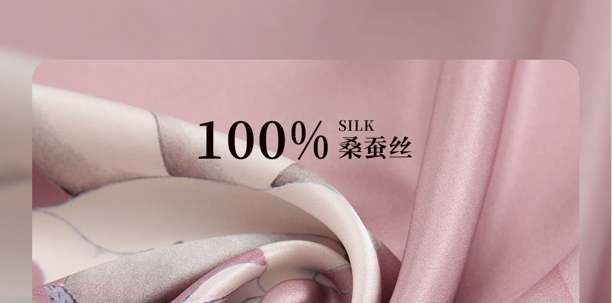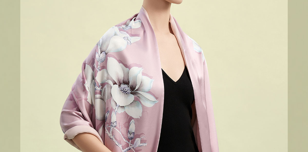 万事利“玉兰赋”63厘米双面印花真丝中方巾