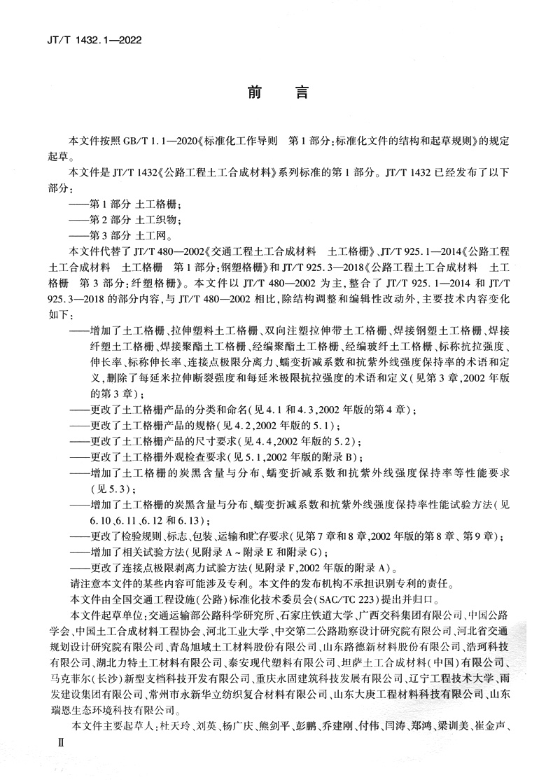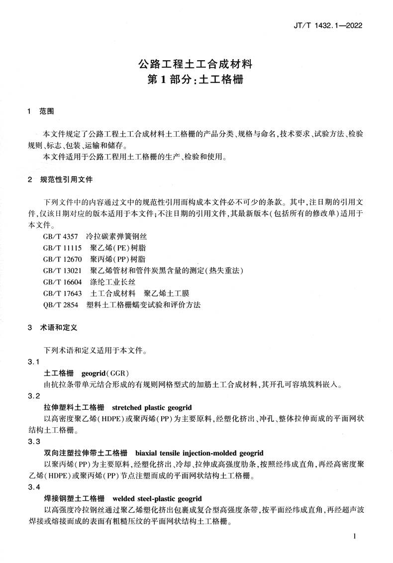 书名:公路工程土工合成材料 第1部分:土工格栅(JT/T 1432.1—2022)