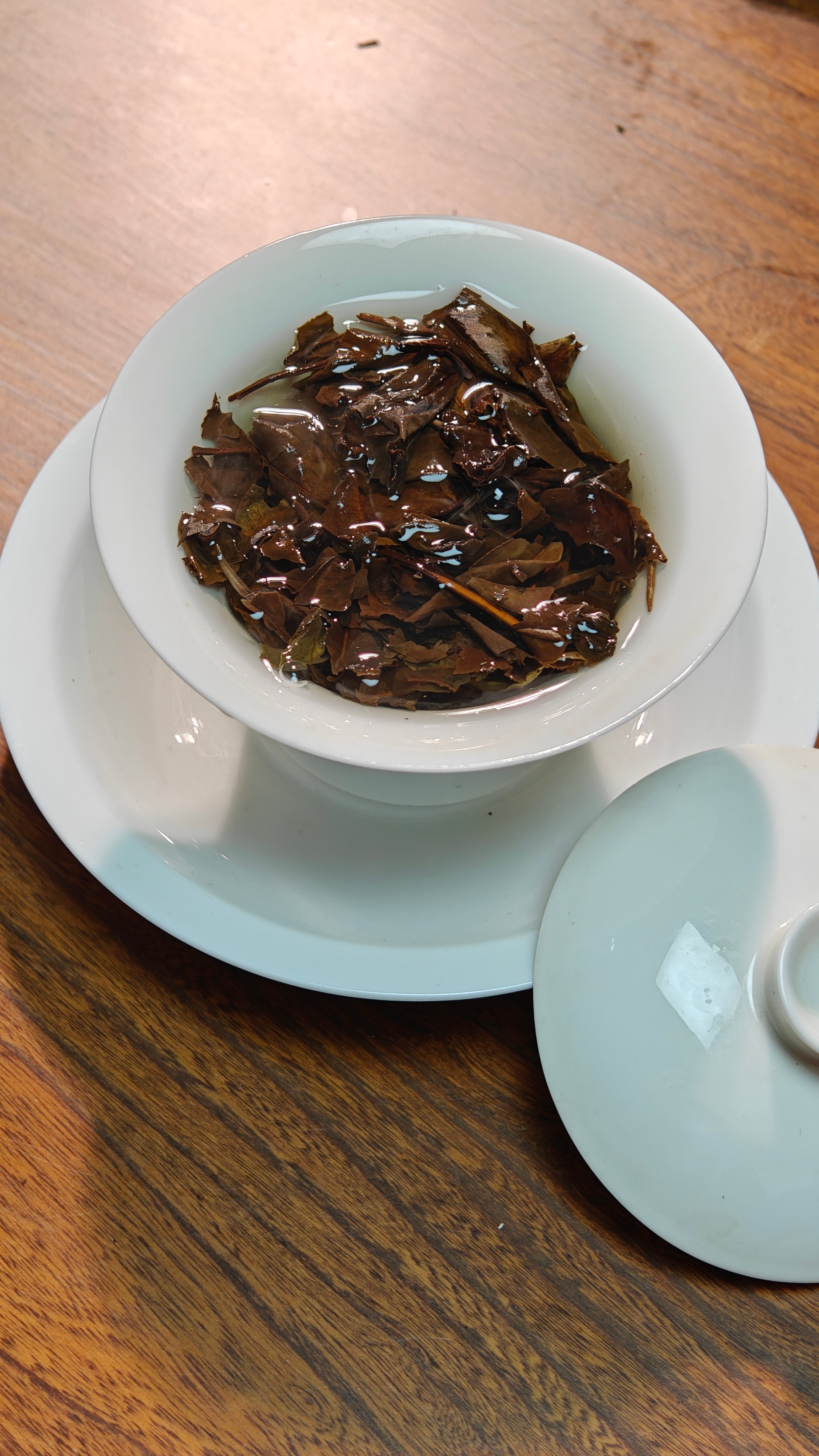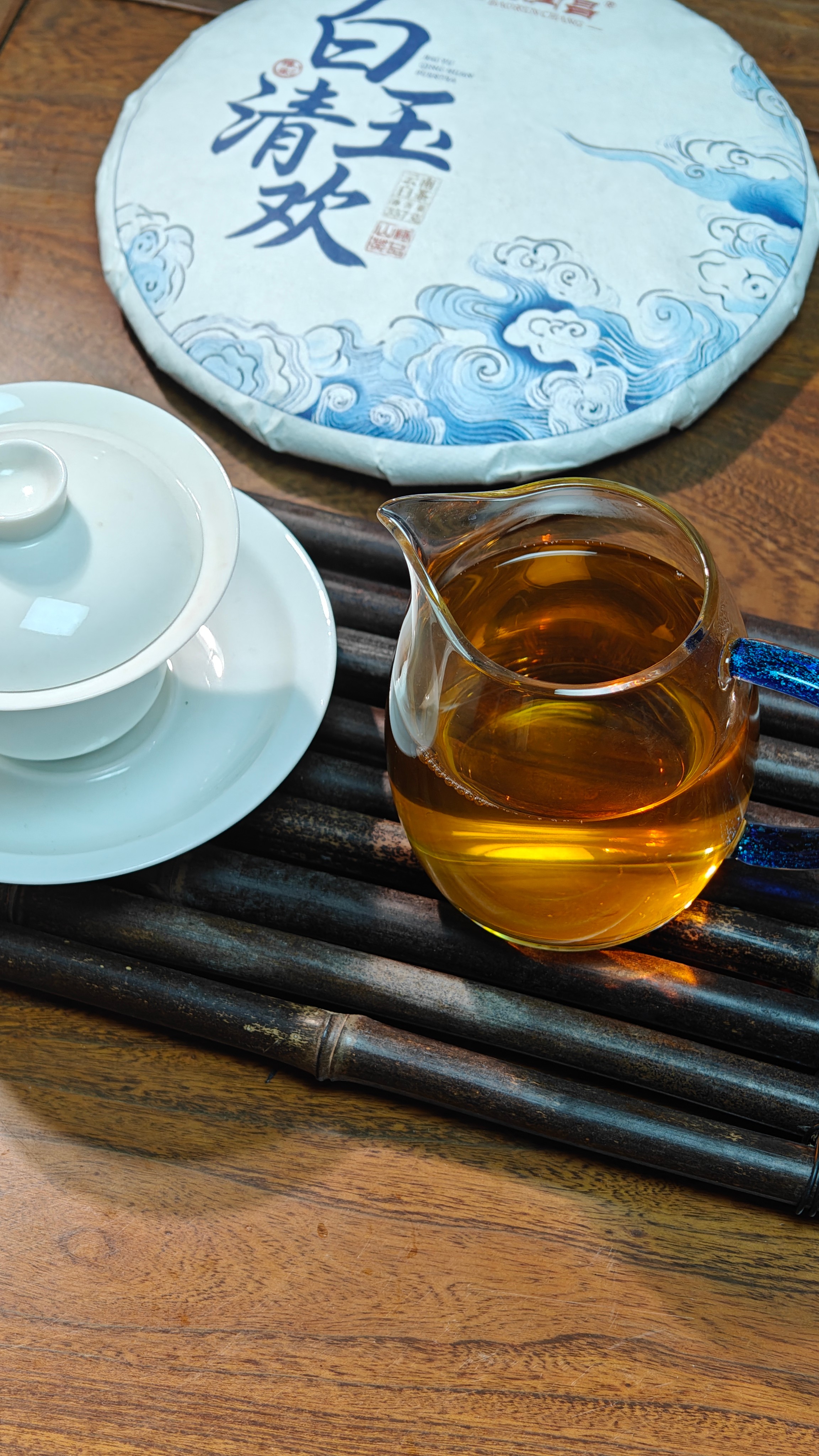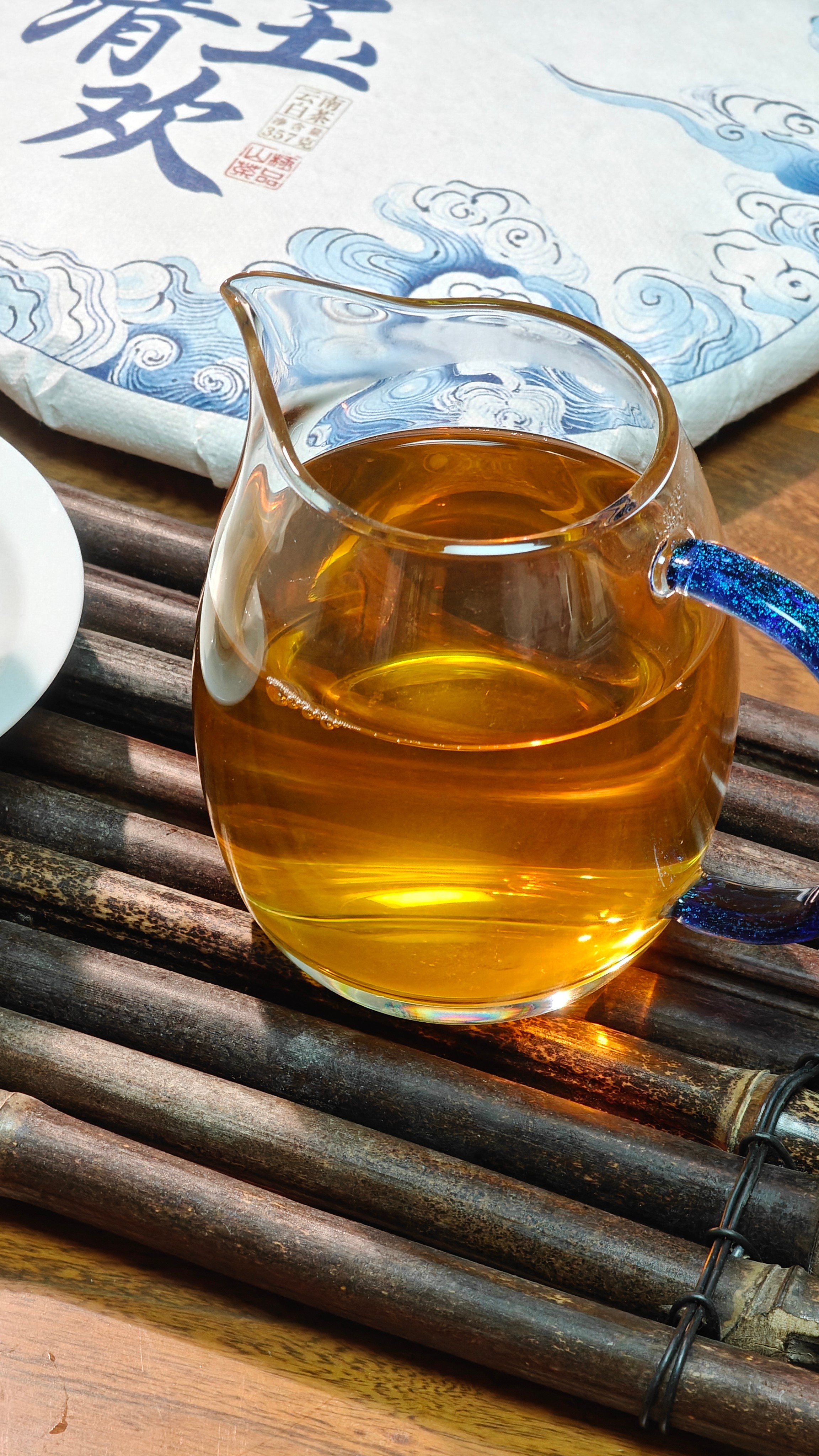 经过7年陈化,口感温润,香气委婉持久,果香枣香、药香,富有胶质感,汤色橙红,茶汤更加厚重绵柔,茶性温和。