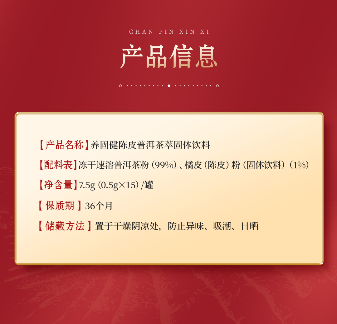 【预售 急单慎拍】无限极养固健陈皮普洱茶萃固体饮料(双罐装)2罐/组*15g 原价198元