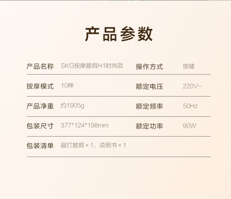 SKG按摩披肩H1系列1代时尚款-香槟金【分仓直发,72小时发货,周末节假日不发货】