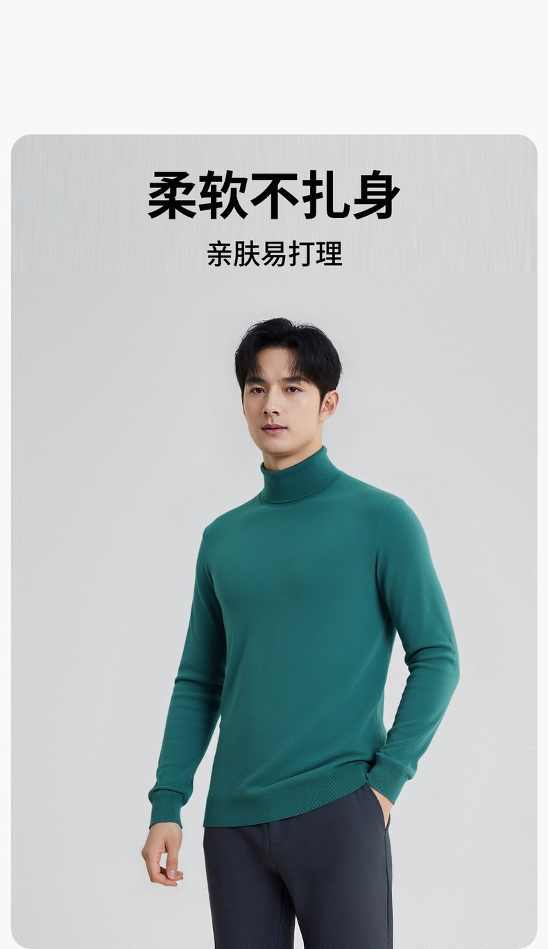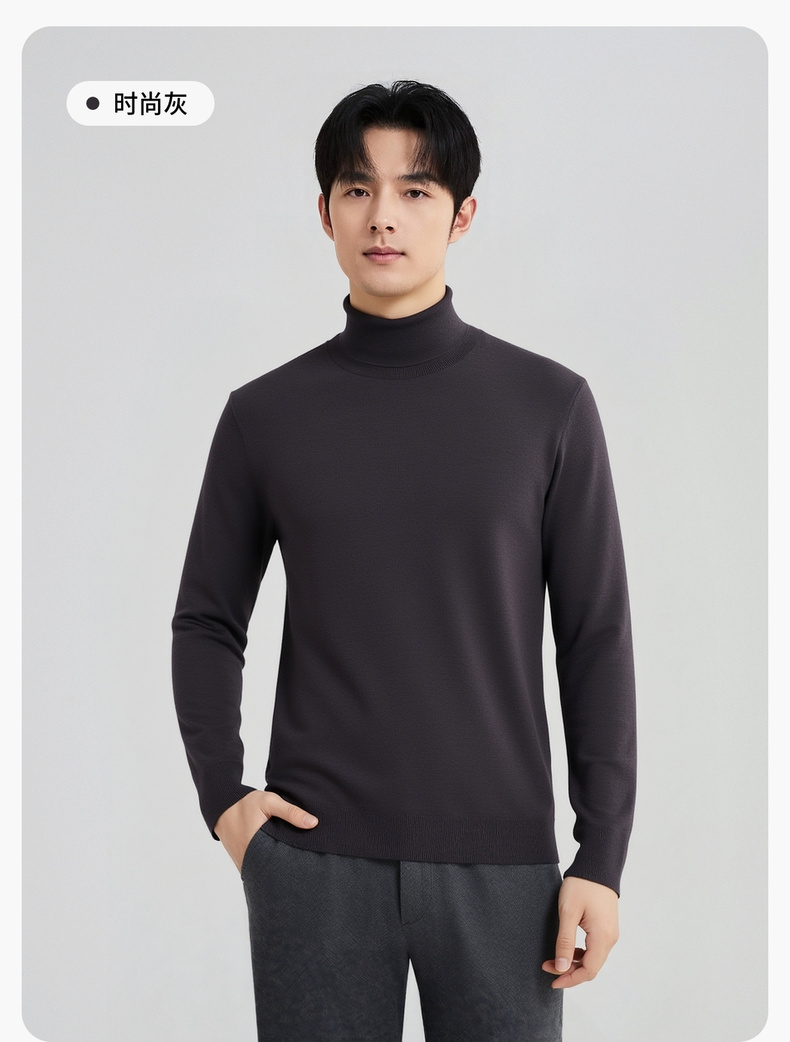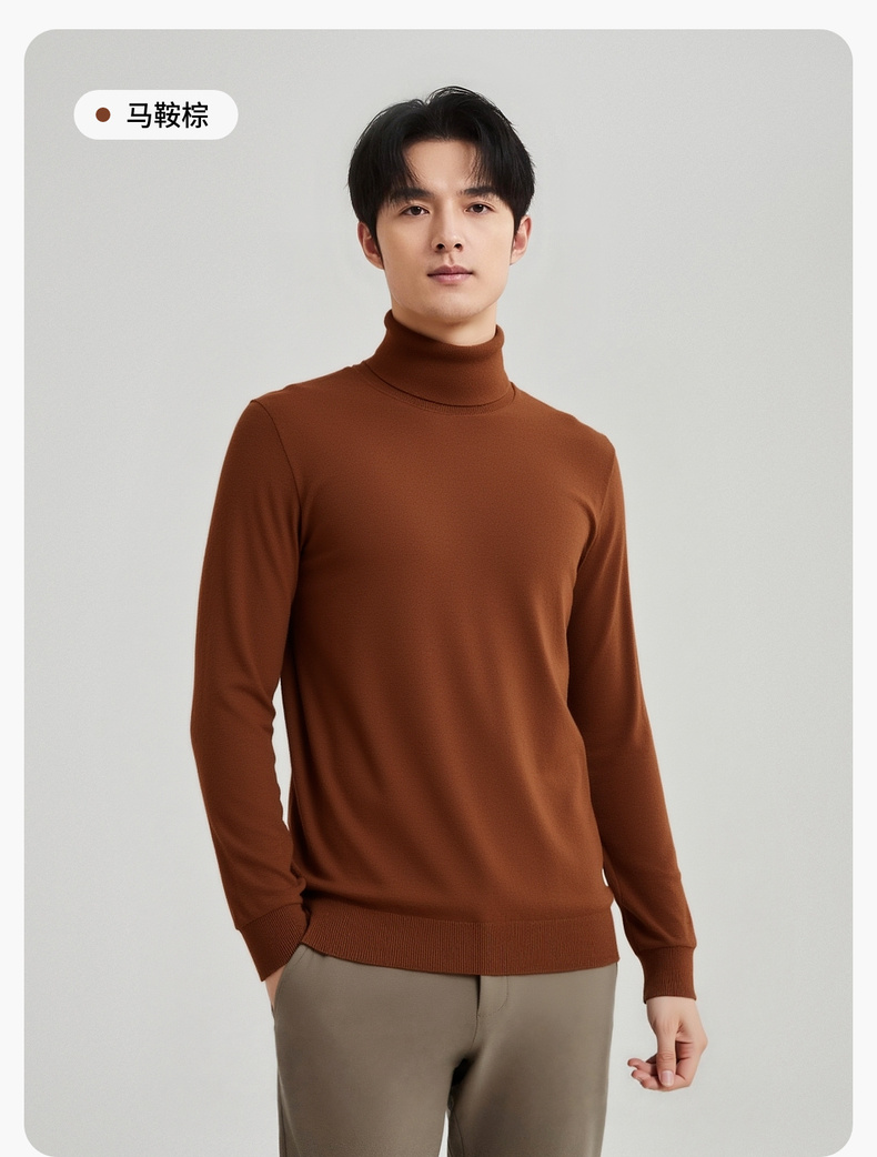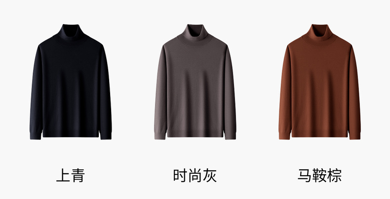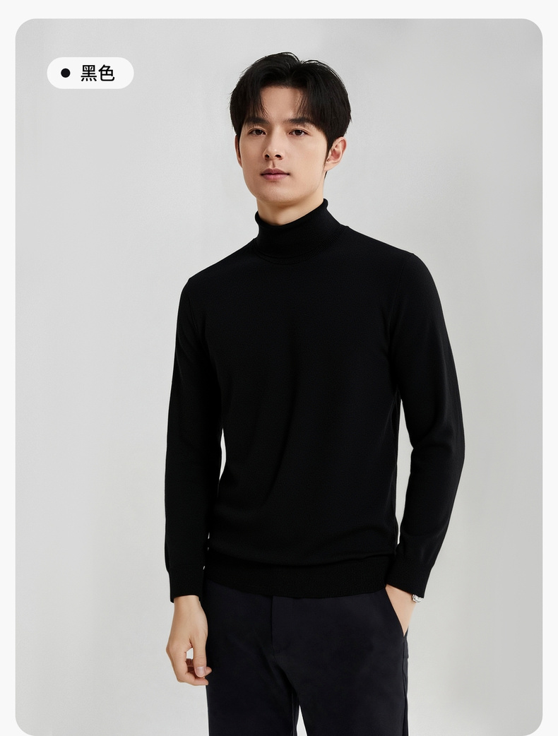 圣得西男款毛衣2025年秋季新款纯色经典百搭套头高领针织衫打底衫