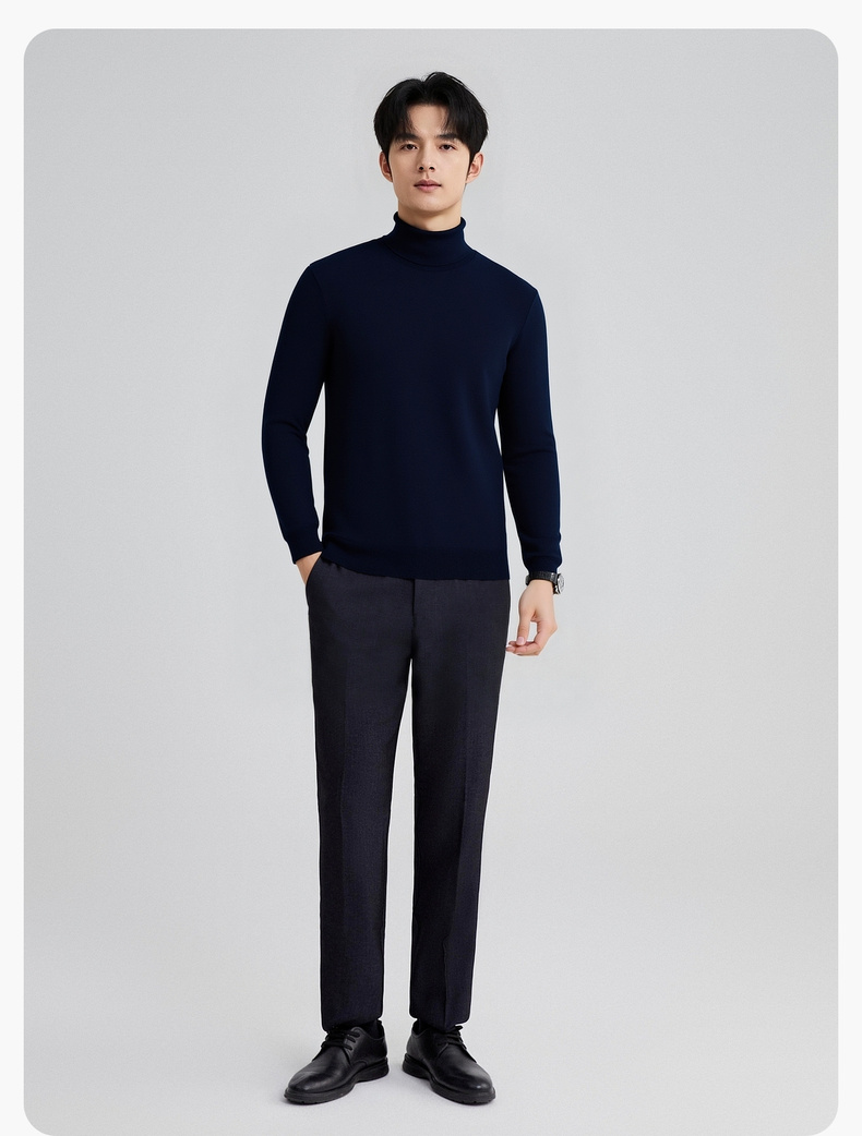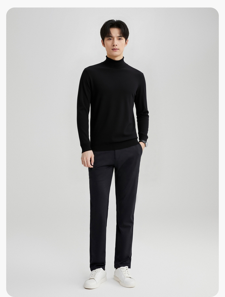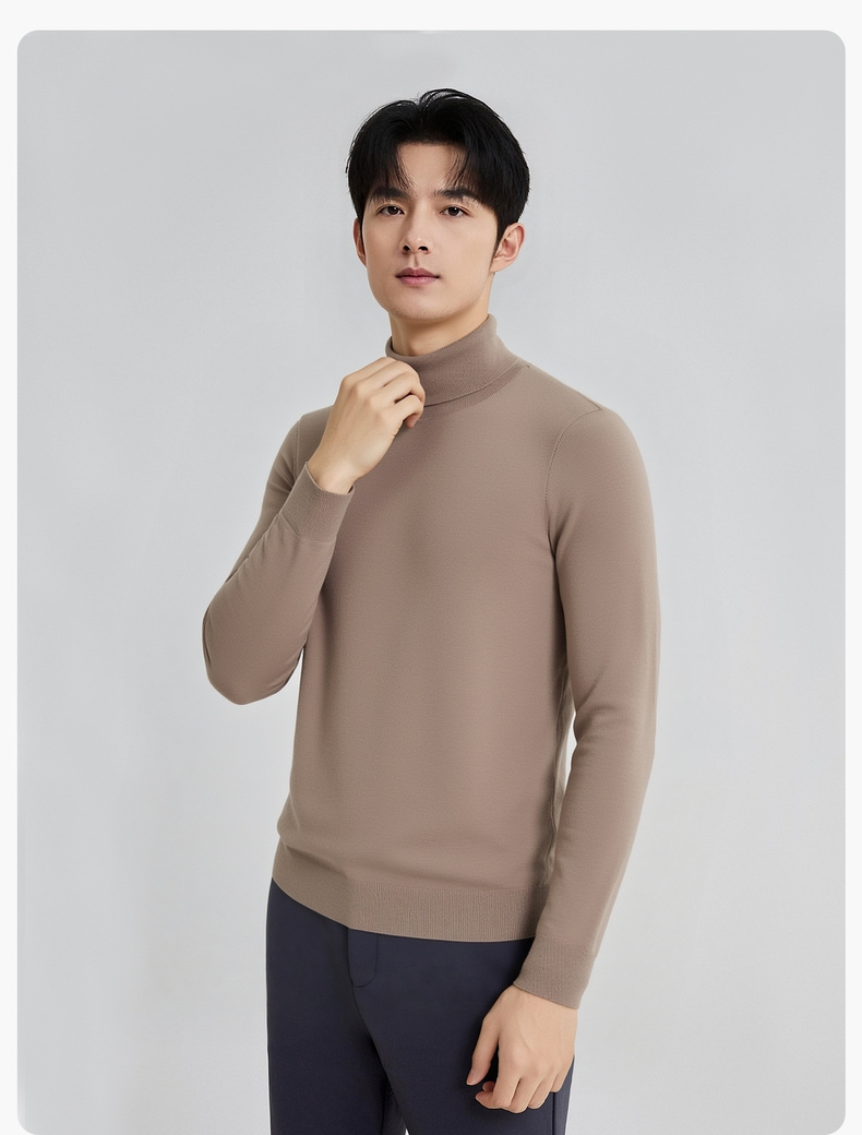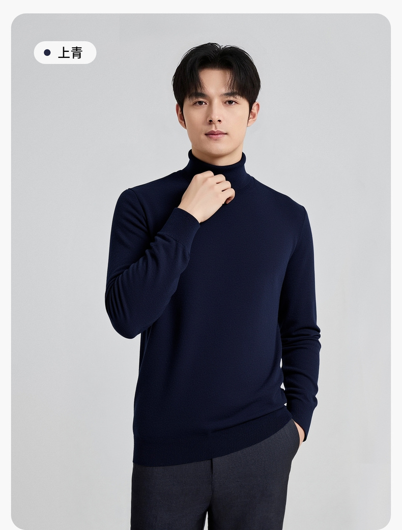 圣得西男款毛衣2025年秋季新款纯色经典百搭套头高领针织衫打底衫