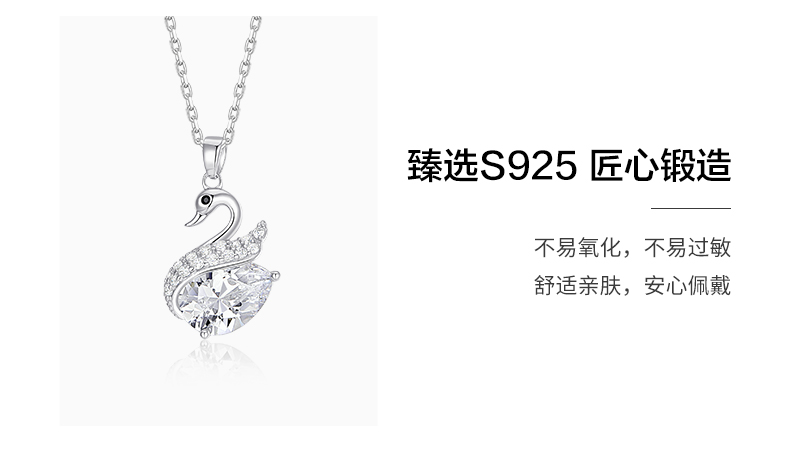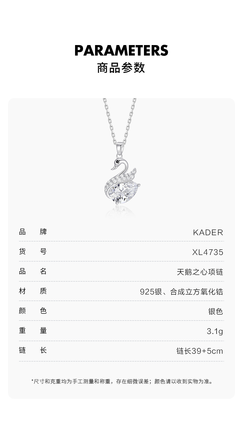 卡蒂罗/KADER 在逃公主系列 天鹅之心项链 925银童话梦境璀璨之心梦幻设计锁骨链 满镶锆石闪耀吊坠 周年礼盒告白