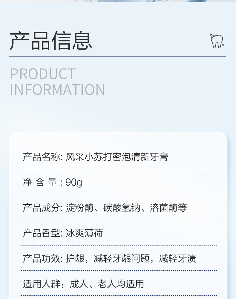 风采小苏打·密泡清新牙膏90g冰爽薄荷28012