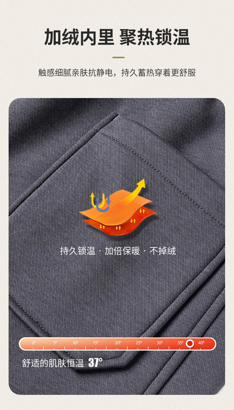 圣得西冬季款男士抗菌远红外传热加绒加厚弹力商务休闲裤2362915715