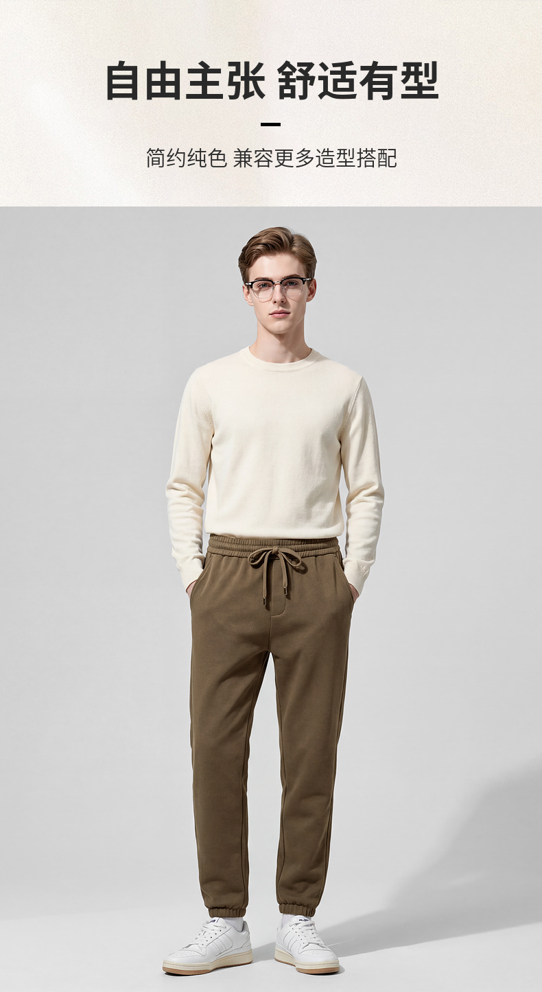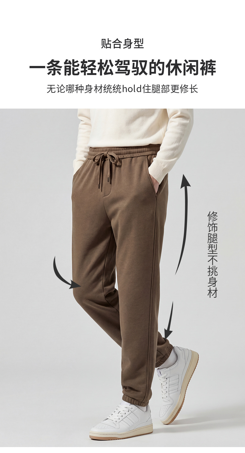 【聚热锁温】圣得西中青年男款休闲裤2025年冬季保暖束脚系绳长裤