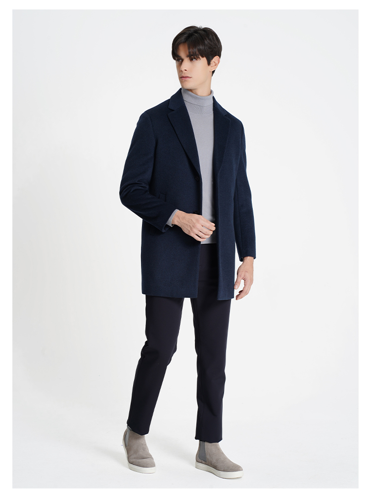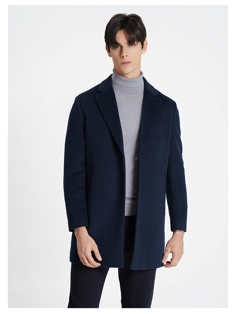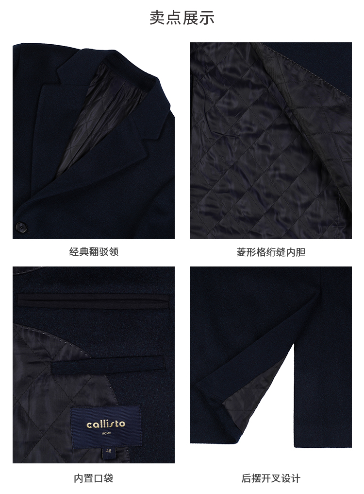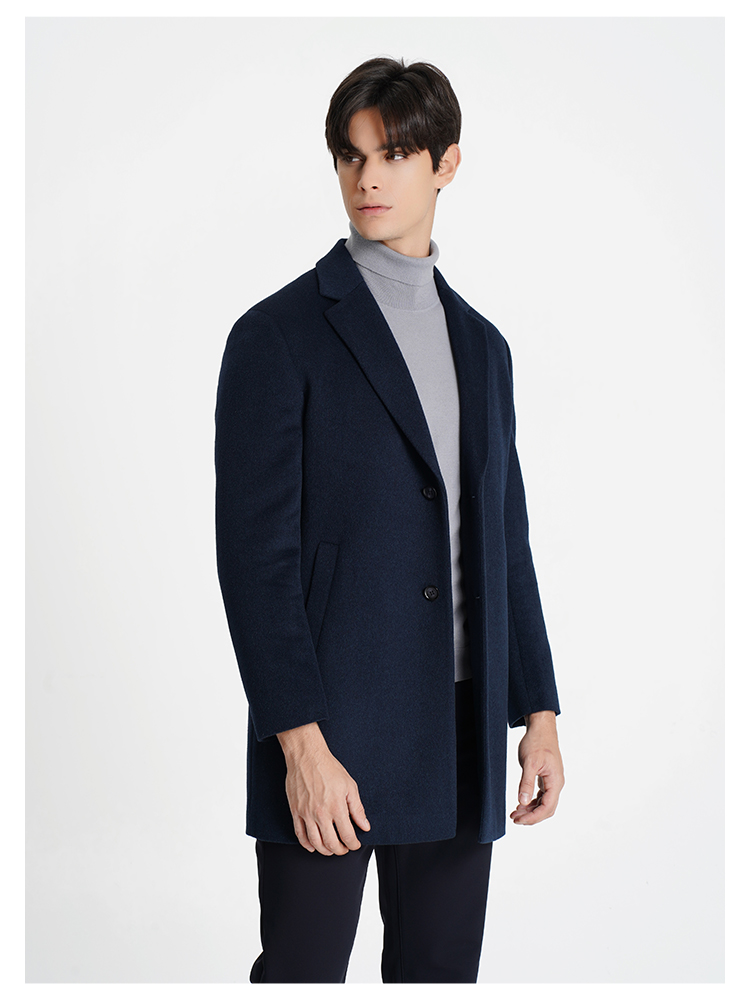 callisto大师系列藏青羊毛混纺大衣