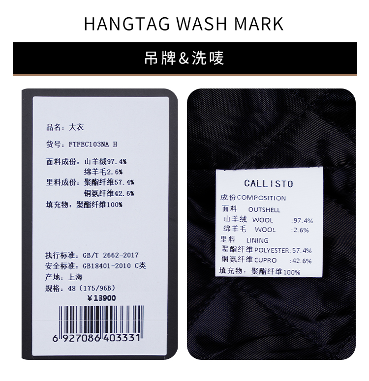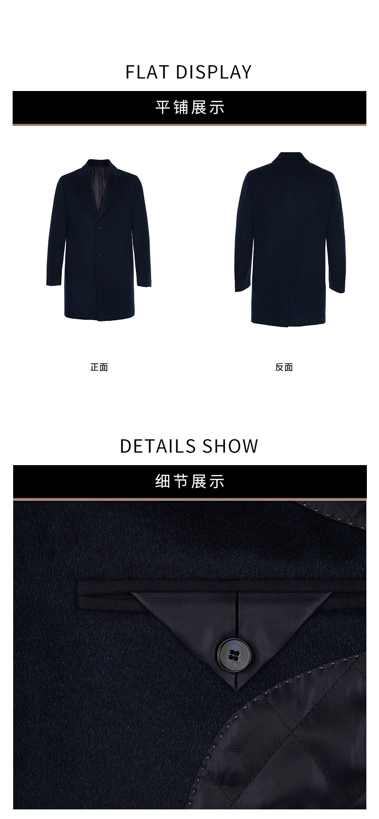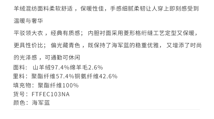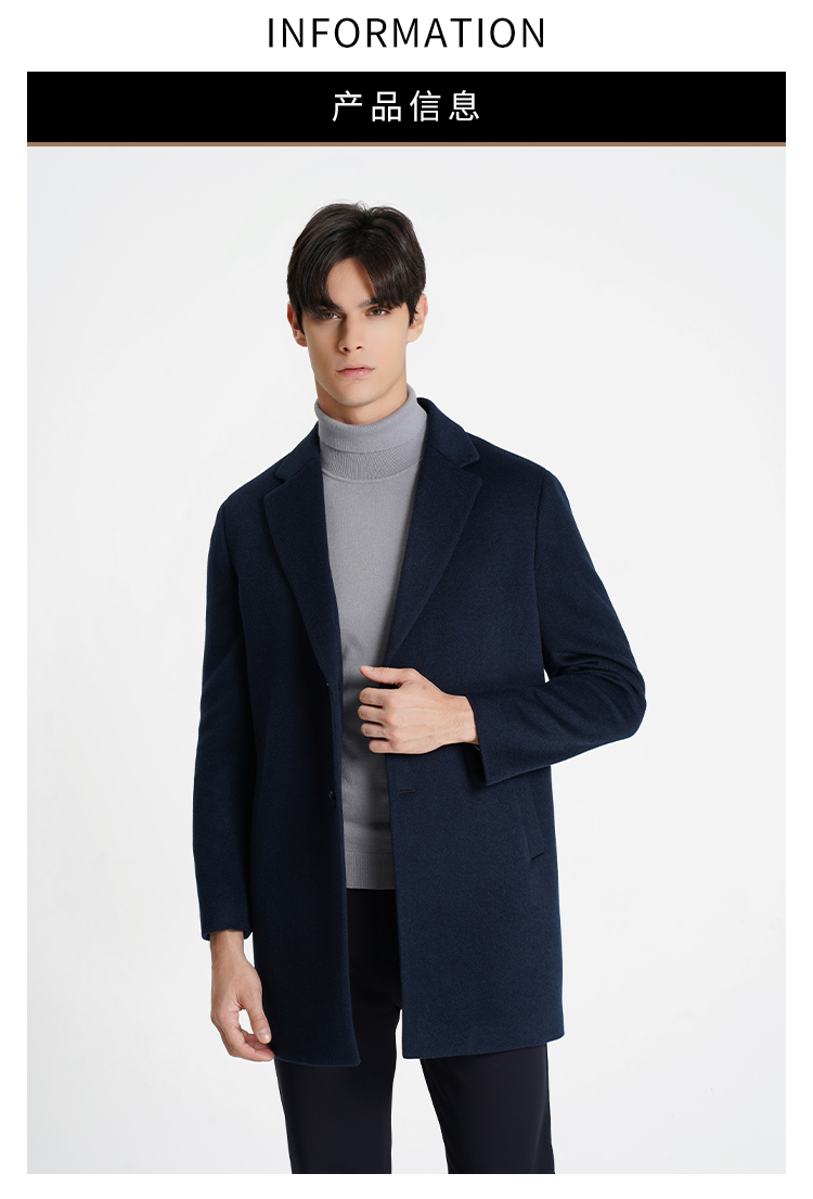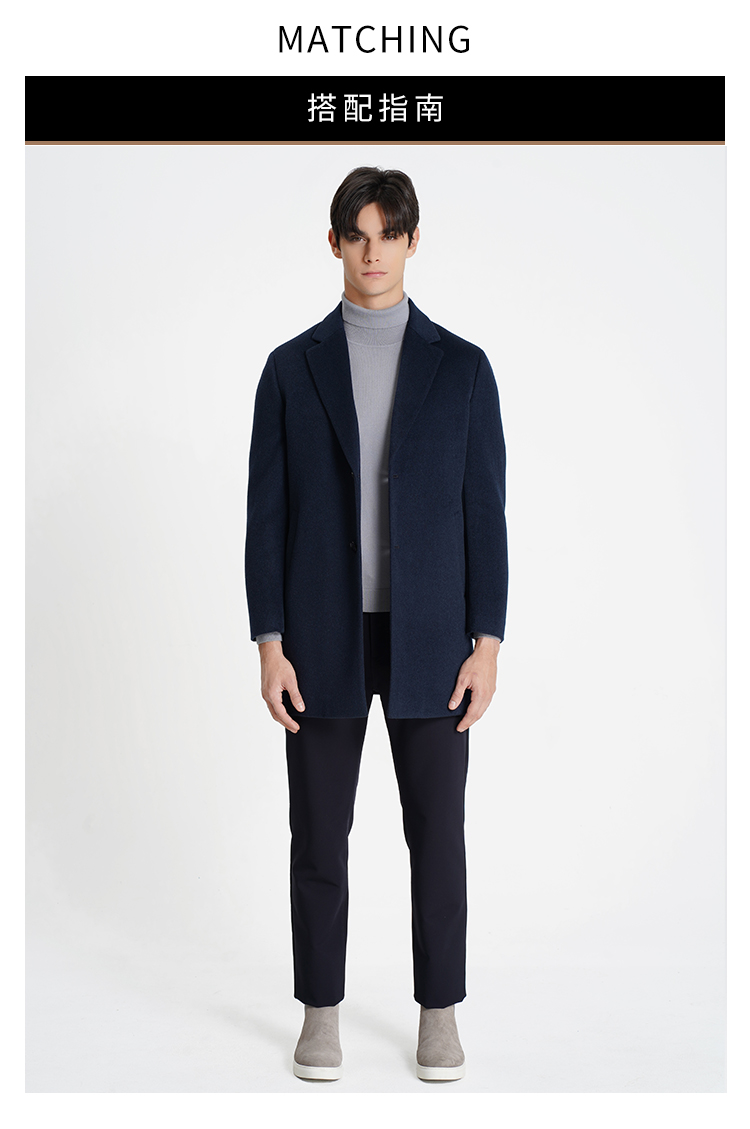 callisto大师系列藏青羊毛混纺大衣