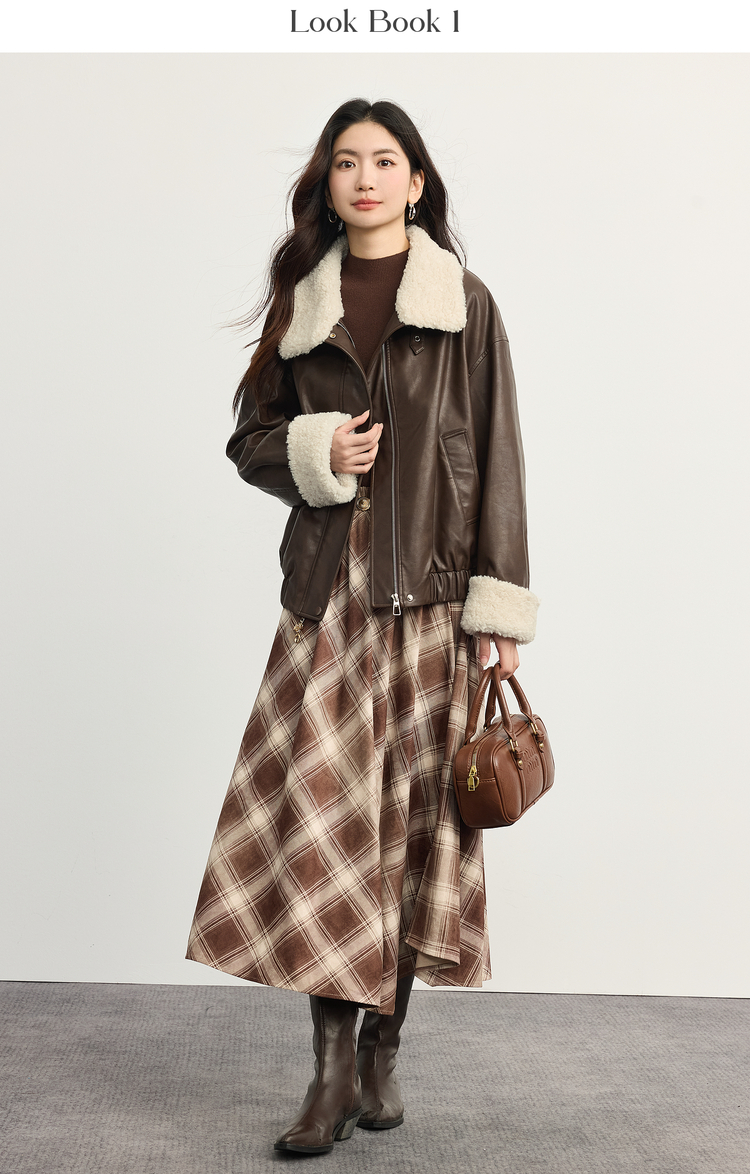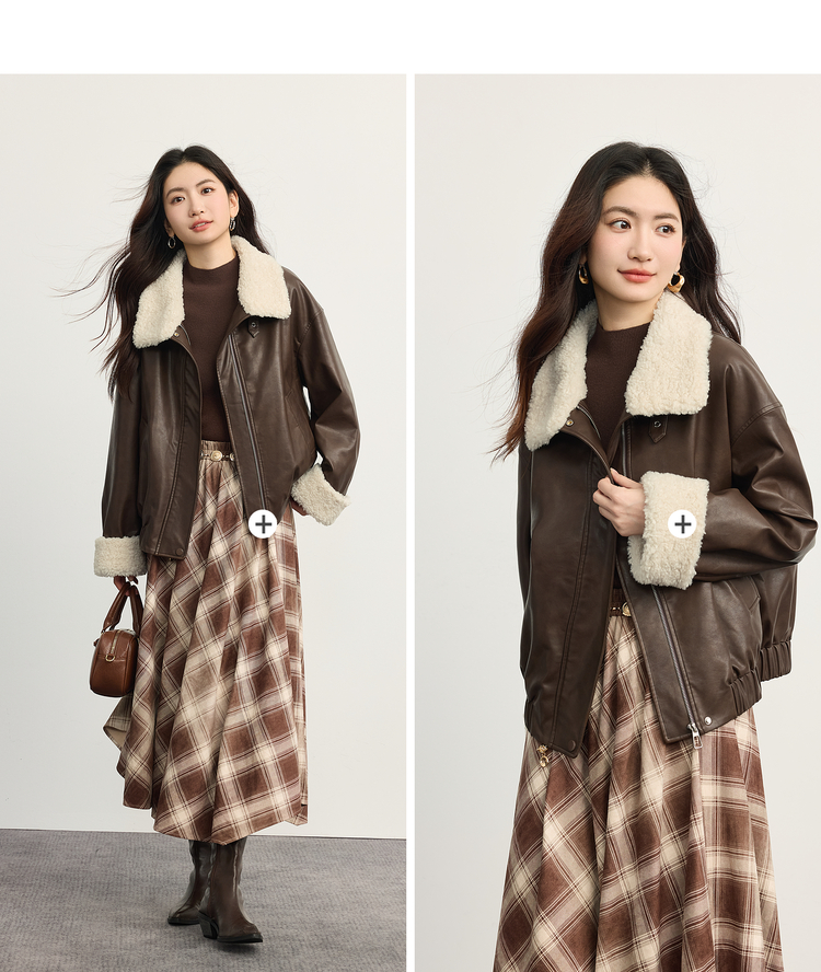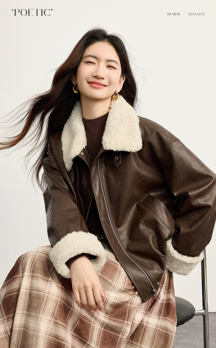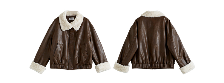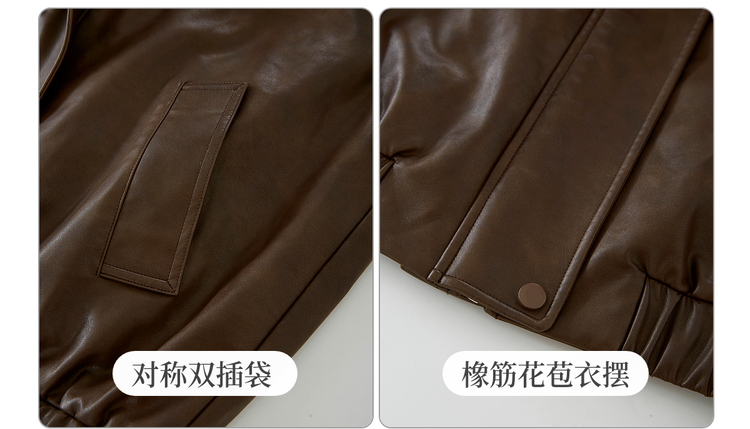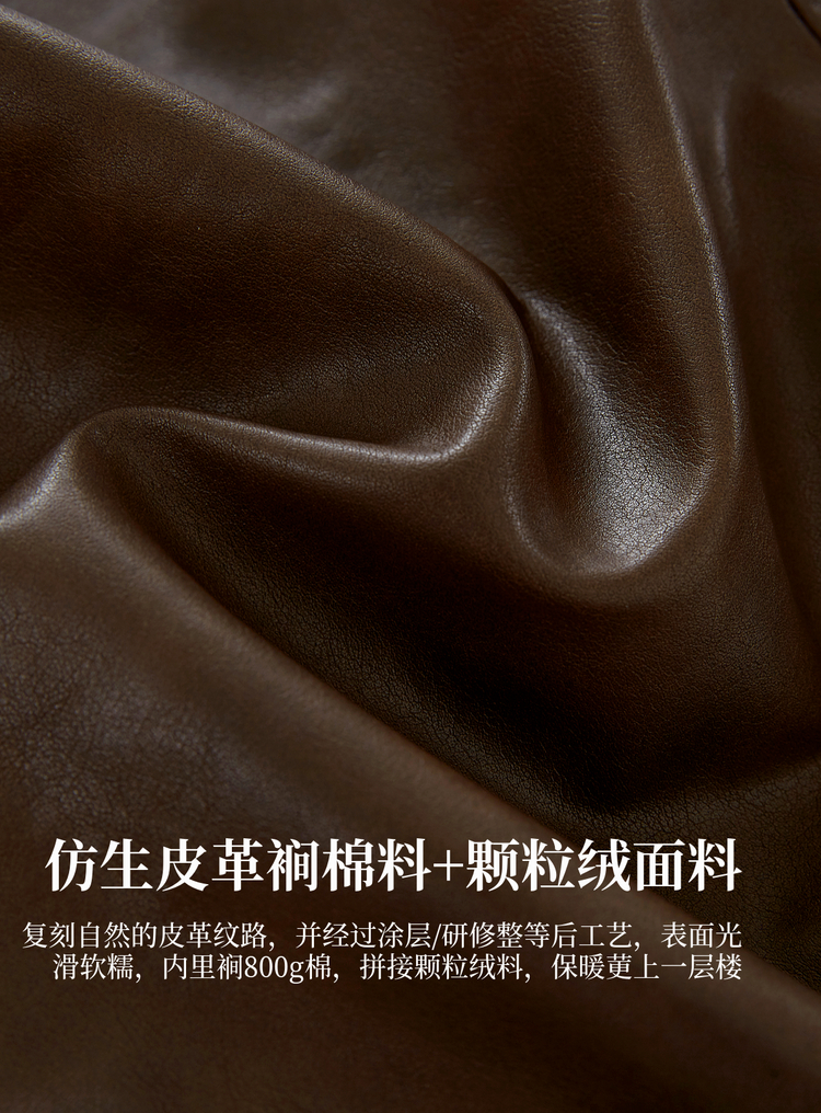 【11/14新品】熙世界雅丹风毛绒翻领花苞皮衣短外套女保暖夹棉PU夹克2025冬新款