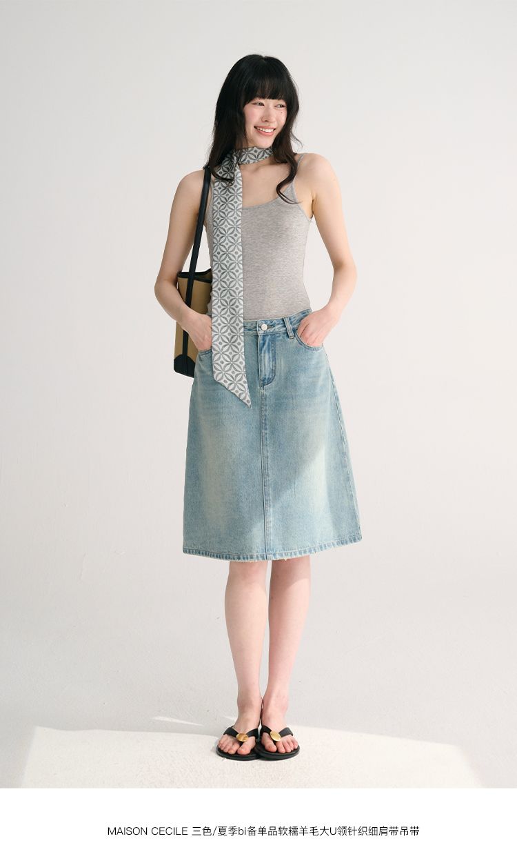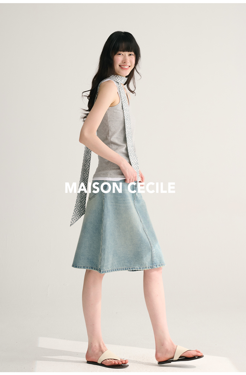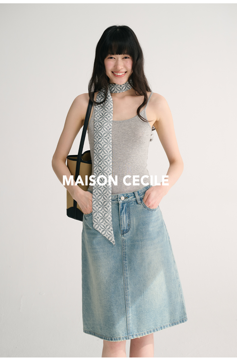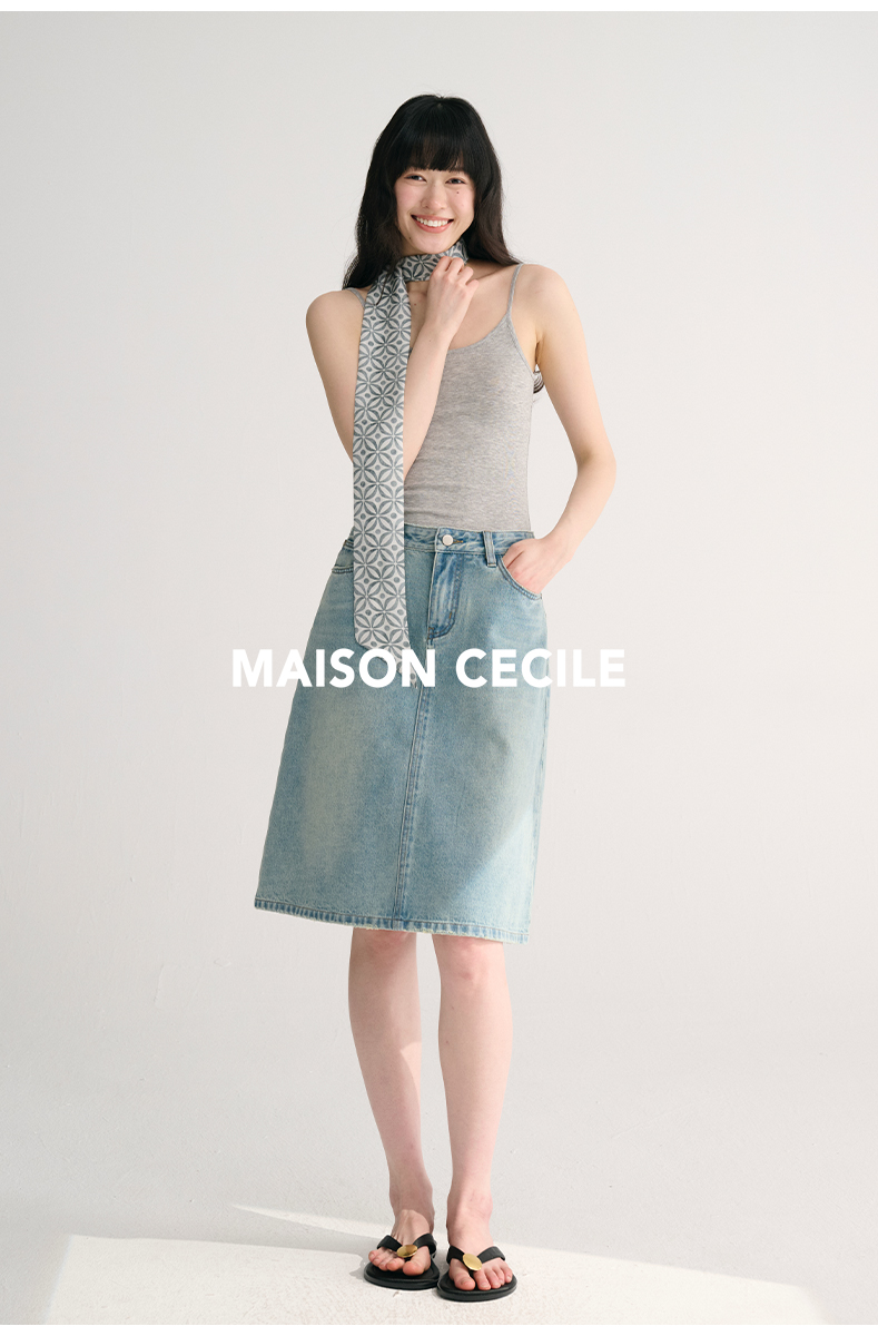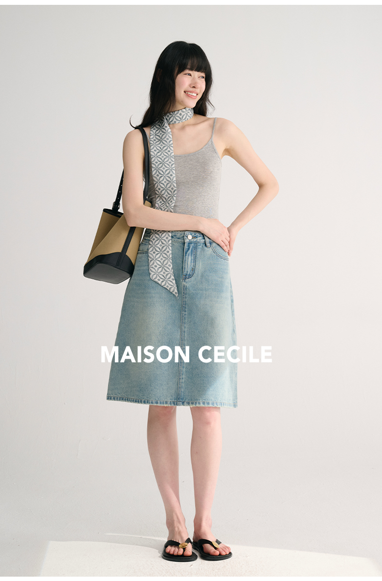 MAISON CECILE 夏日水洗蓝百搭休闲宽松显瘦显比例A摆牛仔半身裙