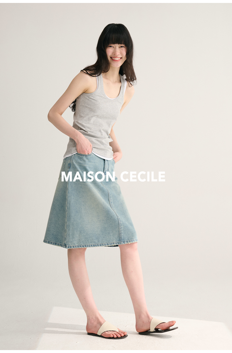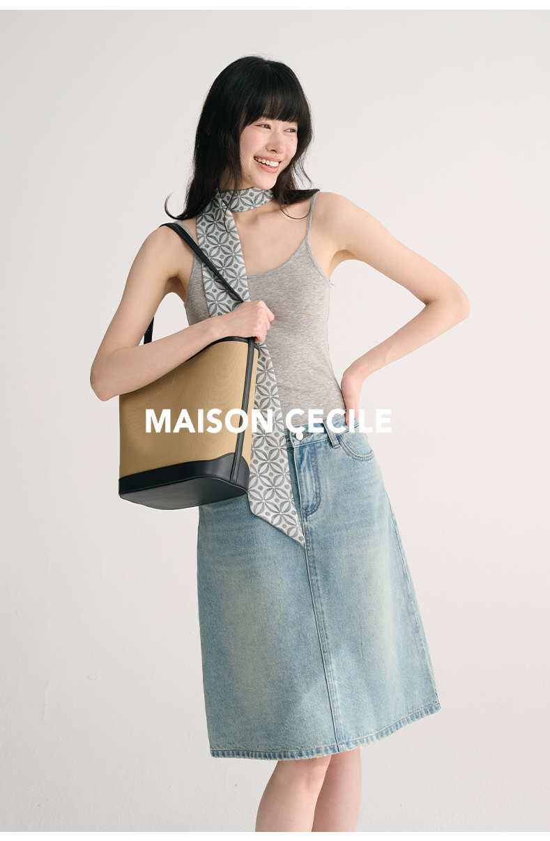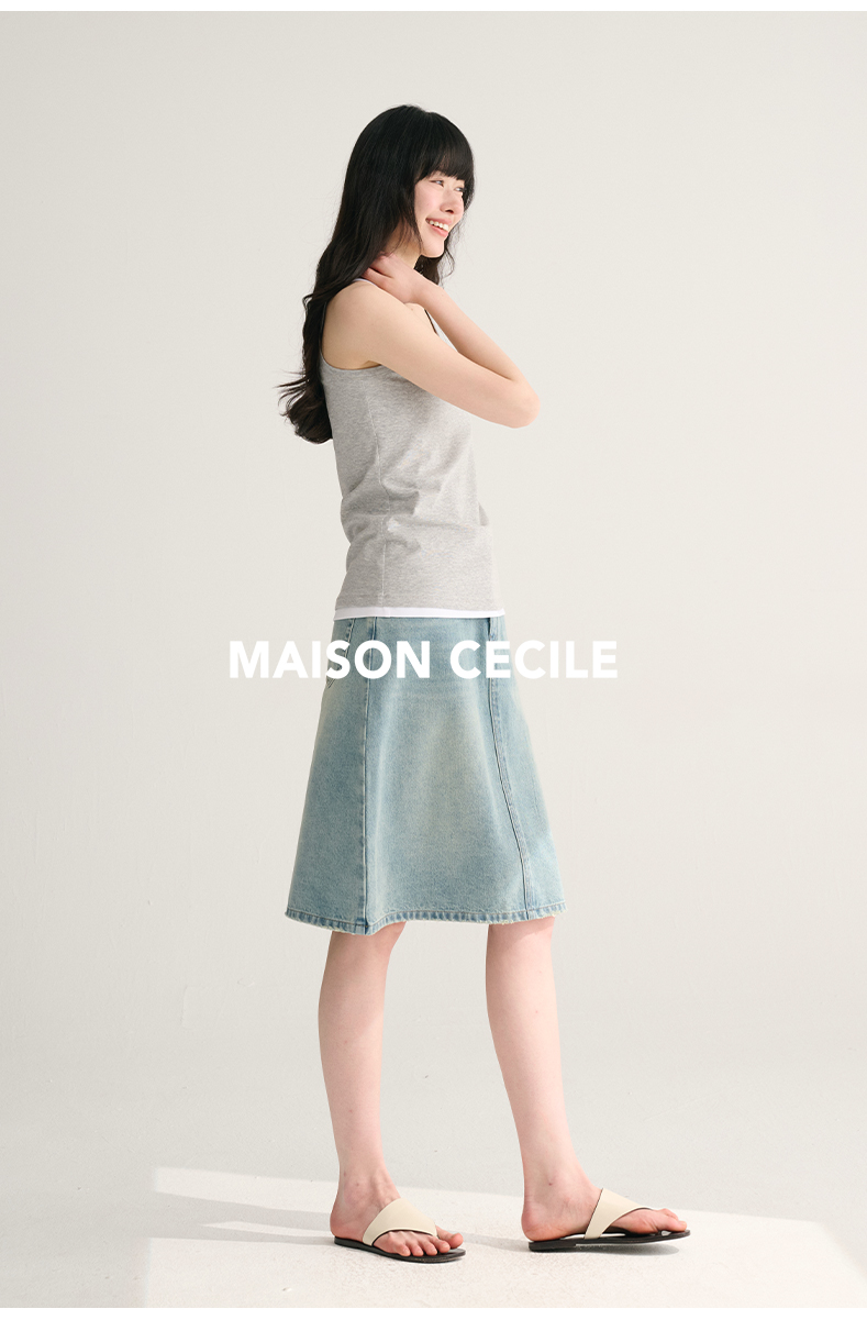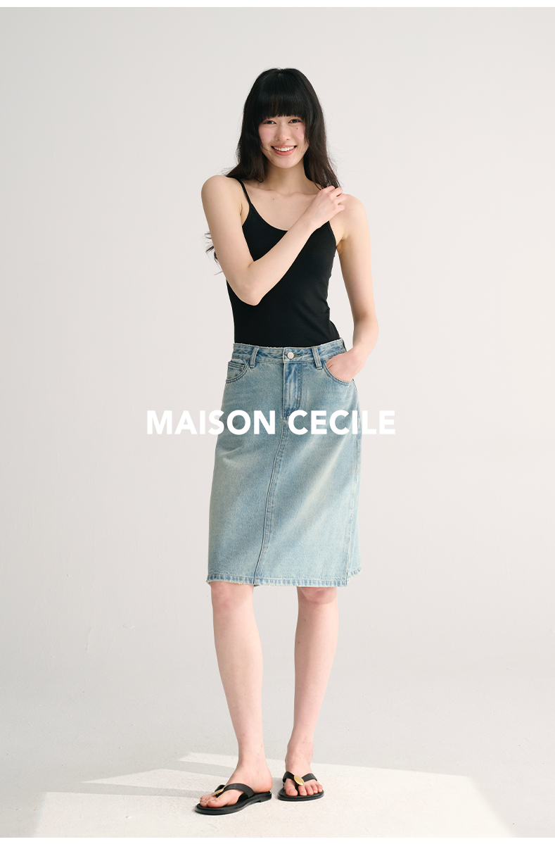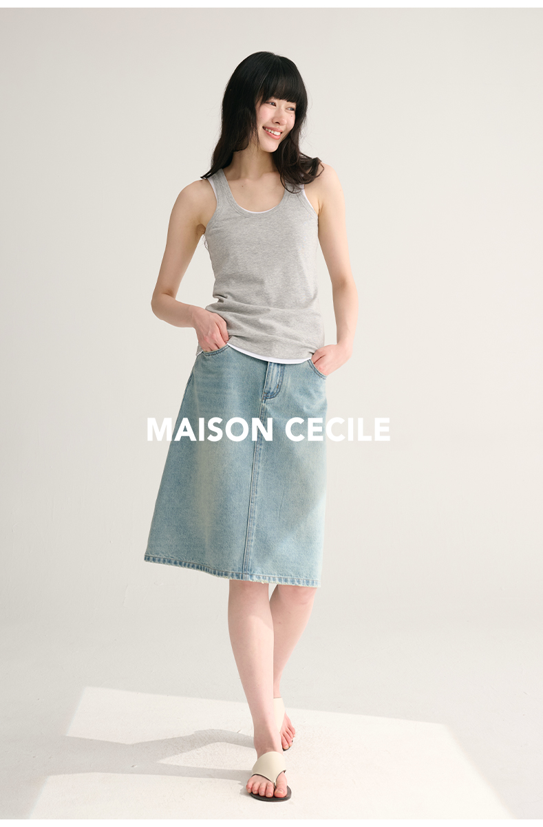 MAISON CECILE 夏日水洗蓝百搭休闲宽松显瘦显比例A摆牛仔半身裙