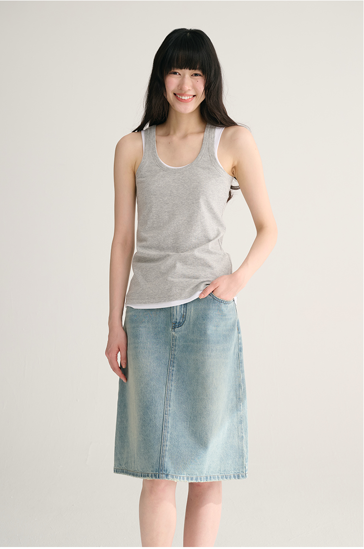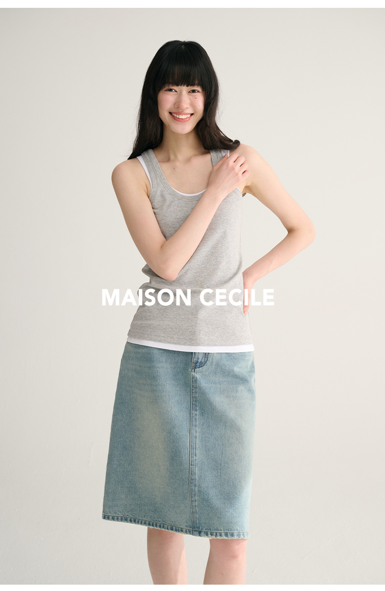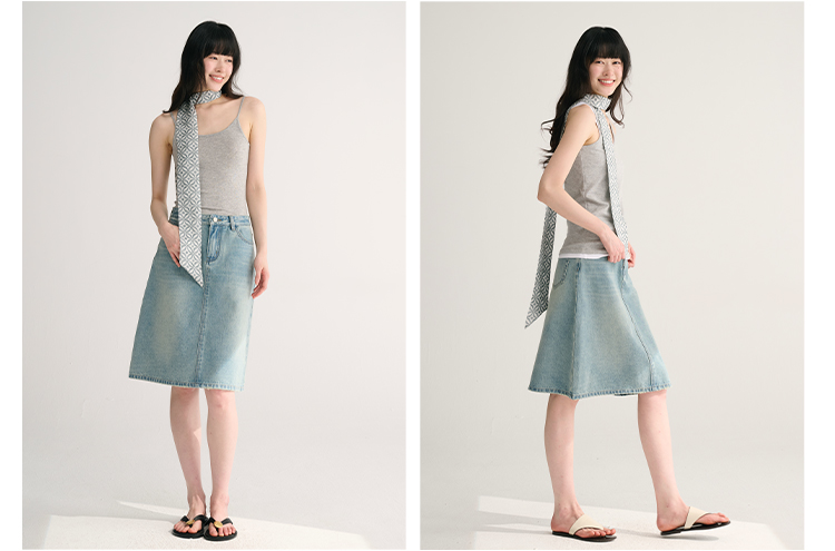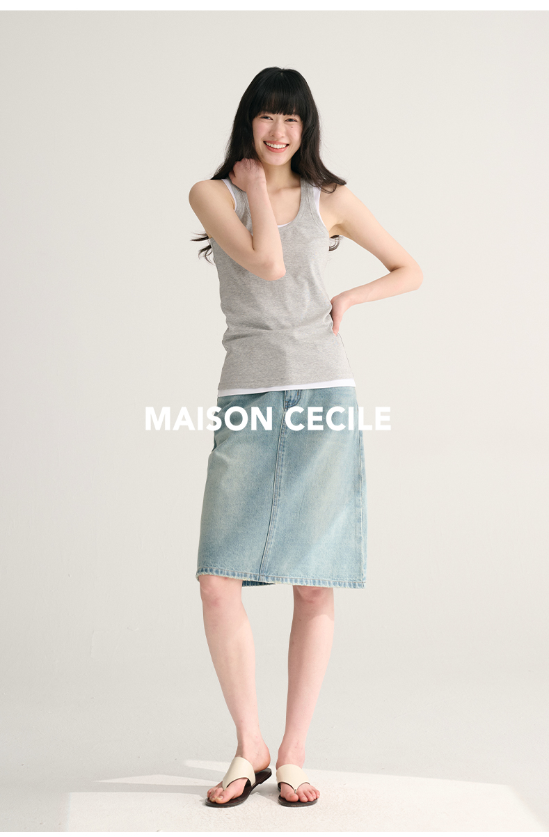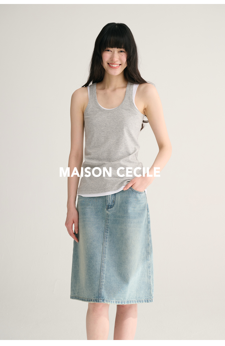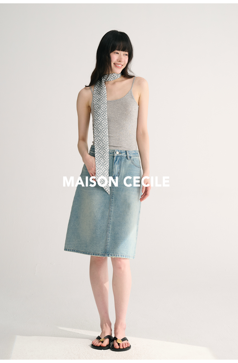 MAISON CECILE 夏日水洗蓝百搭休闲宽松显瘦显比例A摆牛仔半身裙