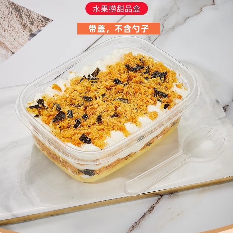 483ml 白色盖保鲜盒 水果捞千层蛋糕打包盒 餐盒甜品PP材质外卖包装盒