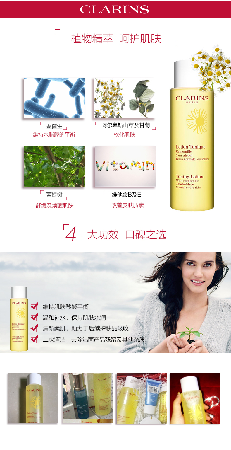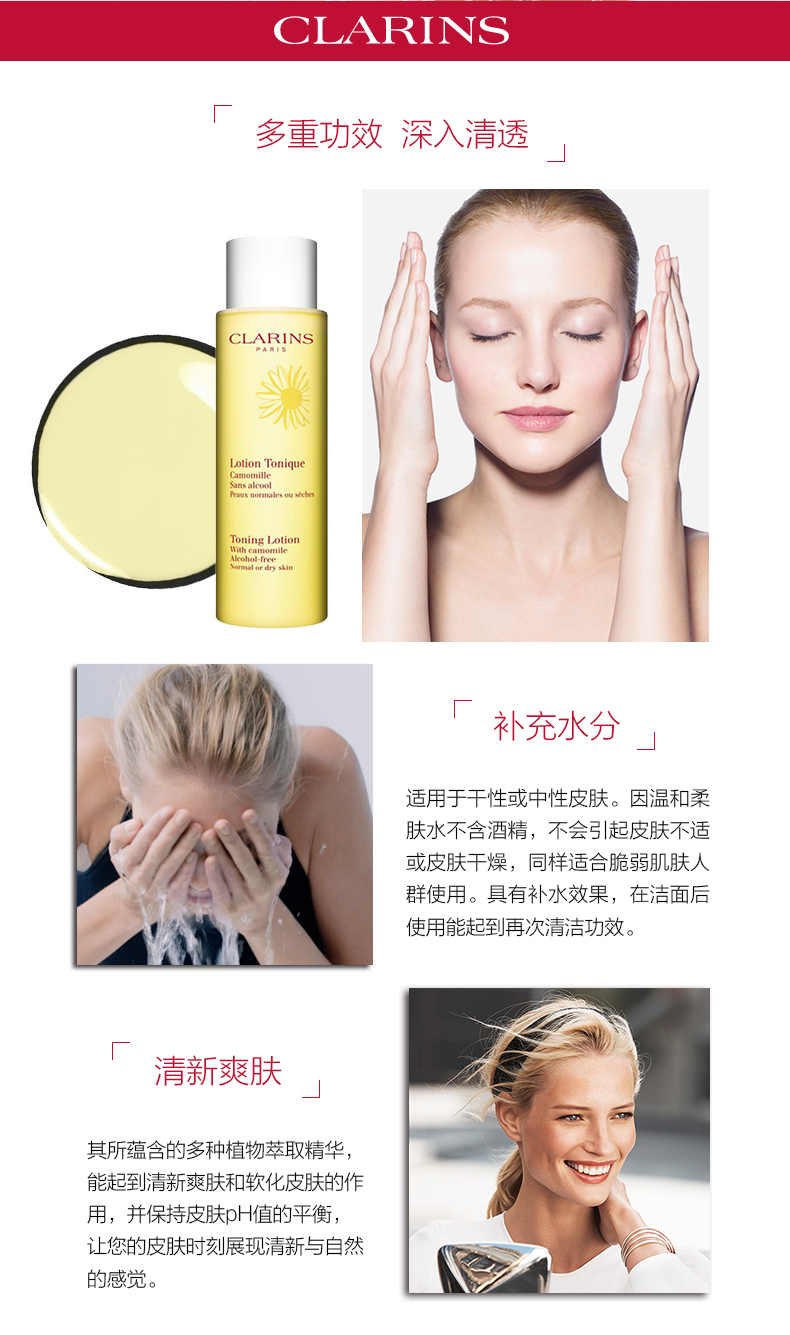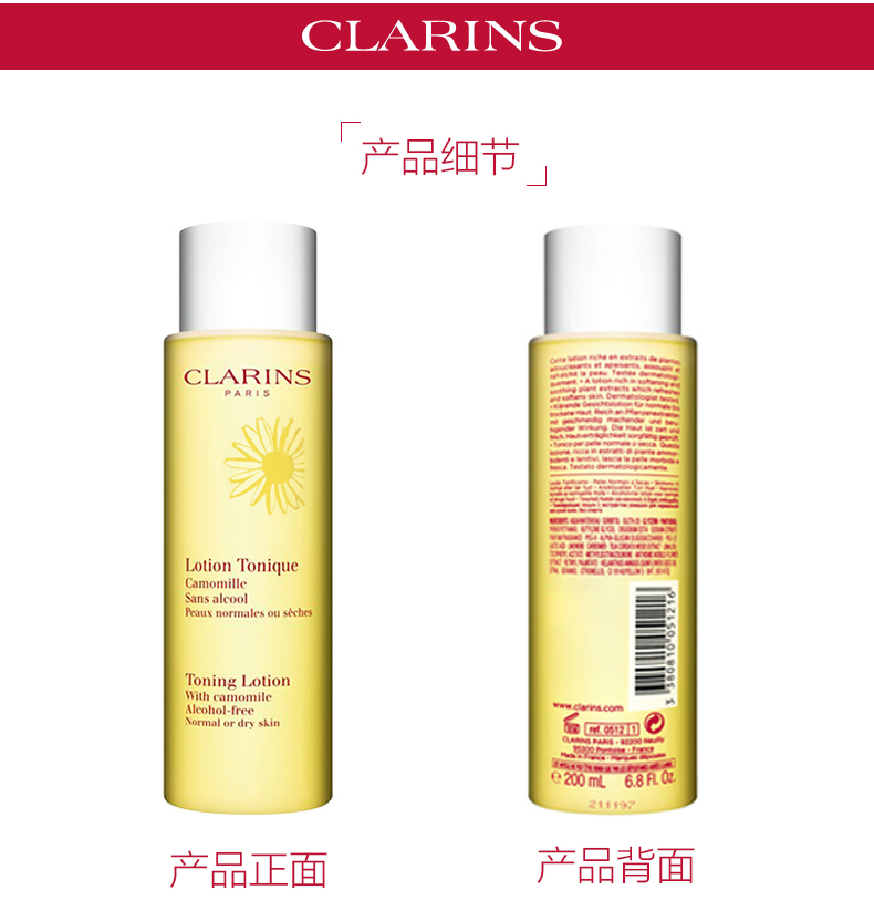 Clarins/娇韵诗黄水 柔肤水爽肤水温和中干干性化妆水200ml /400ml补水保湿舒缓肌肤