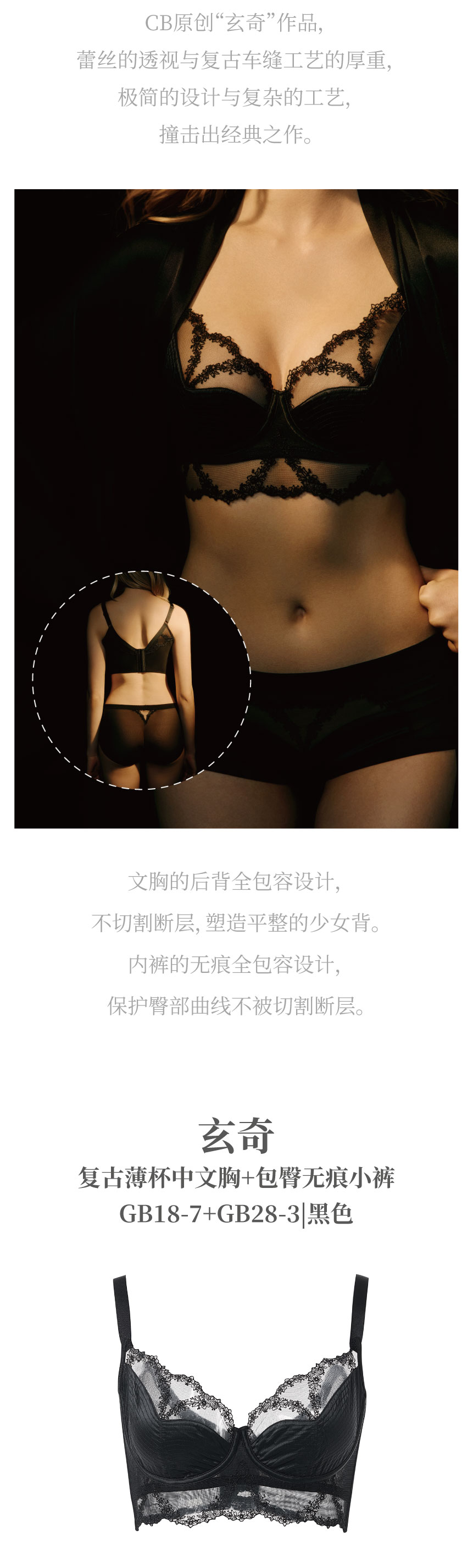 CB | 轻塑 玄奇复古薄杯中文胸/套系(黑色)