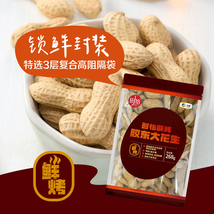 【特惠 保质期到2025/4/27到期介意慎拍】时怡鲜烤胶东大花生268g/袋*4