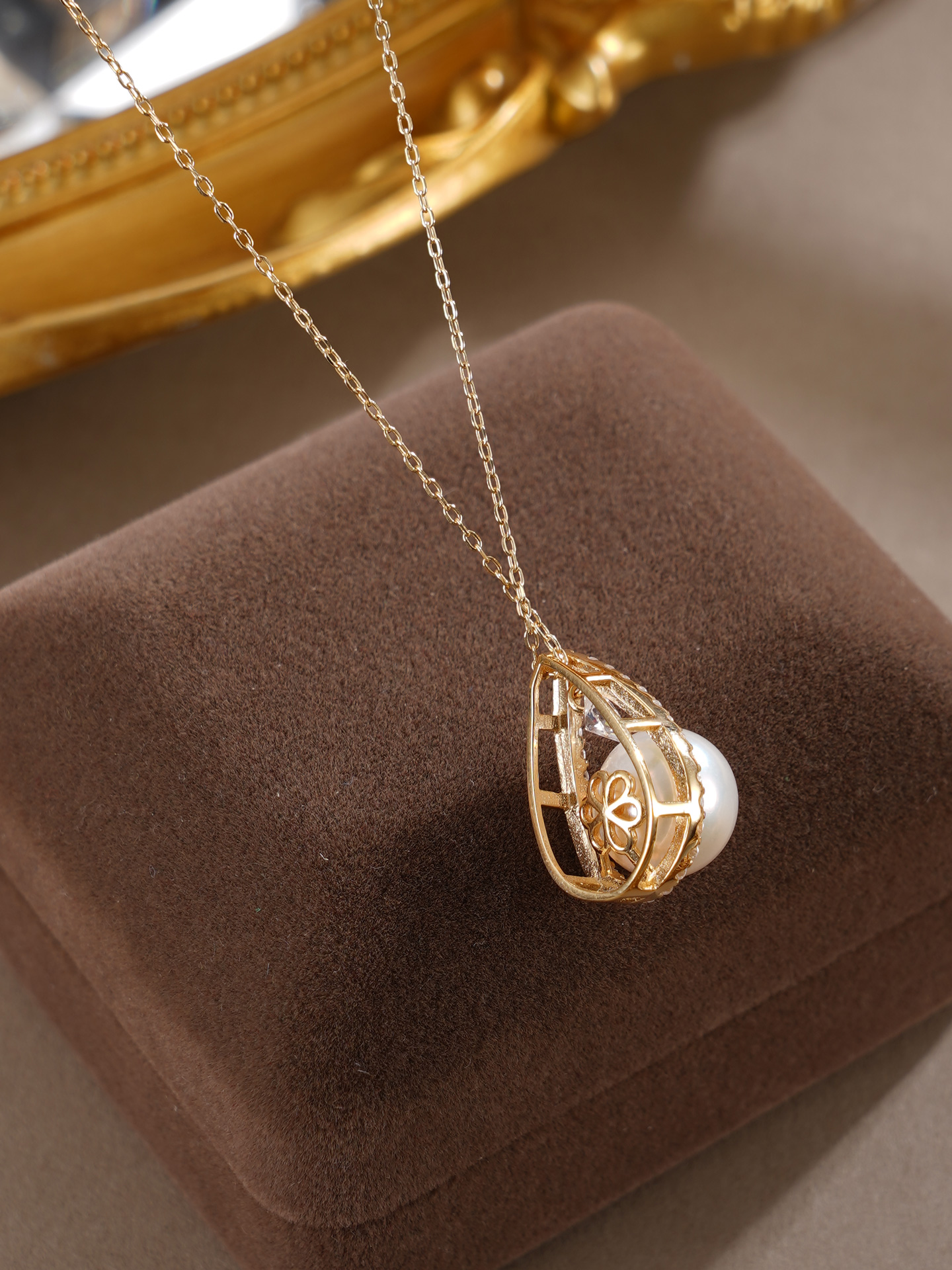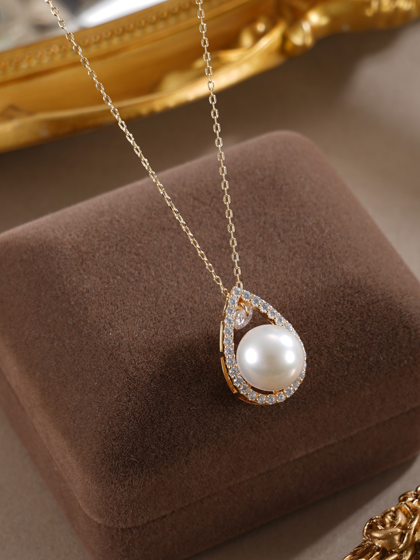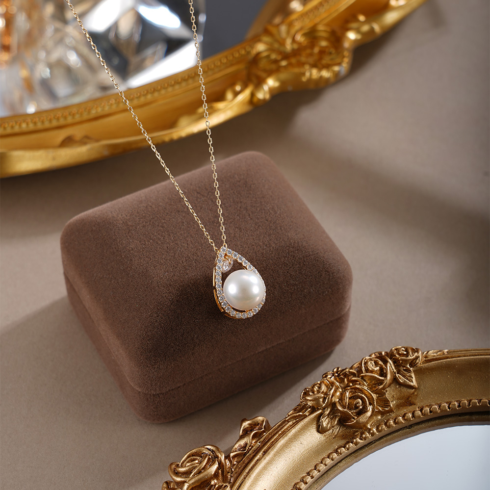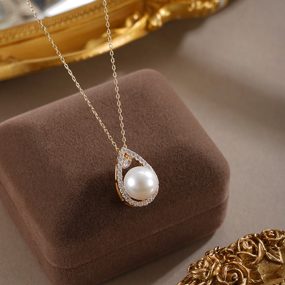 子佩集【露华秋浓】银S925珍珠惜王妃套链【MLTL027】10mm珠镀金水滴2601