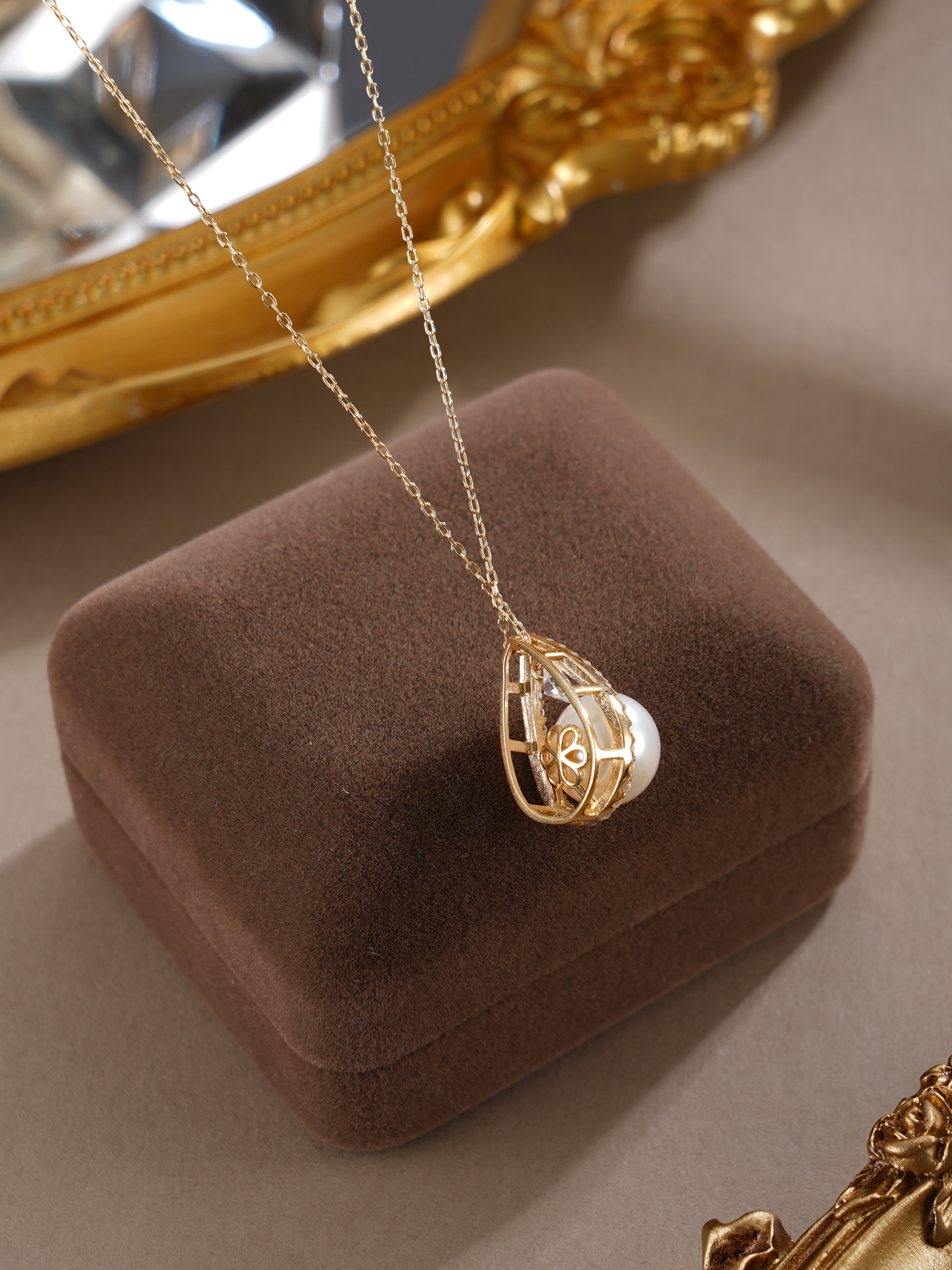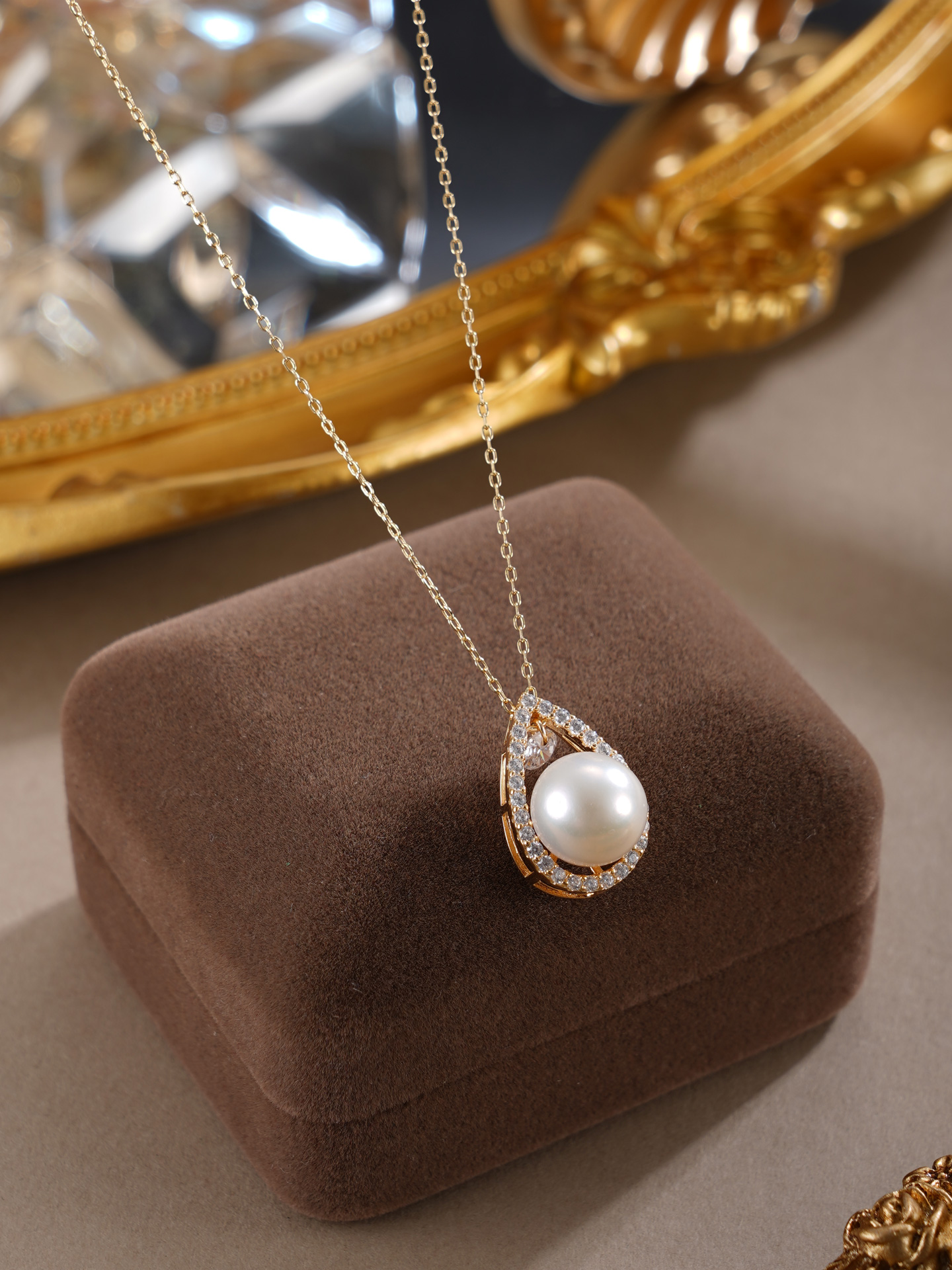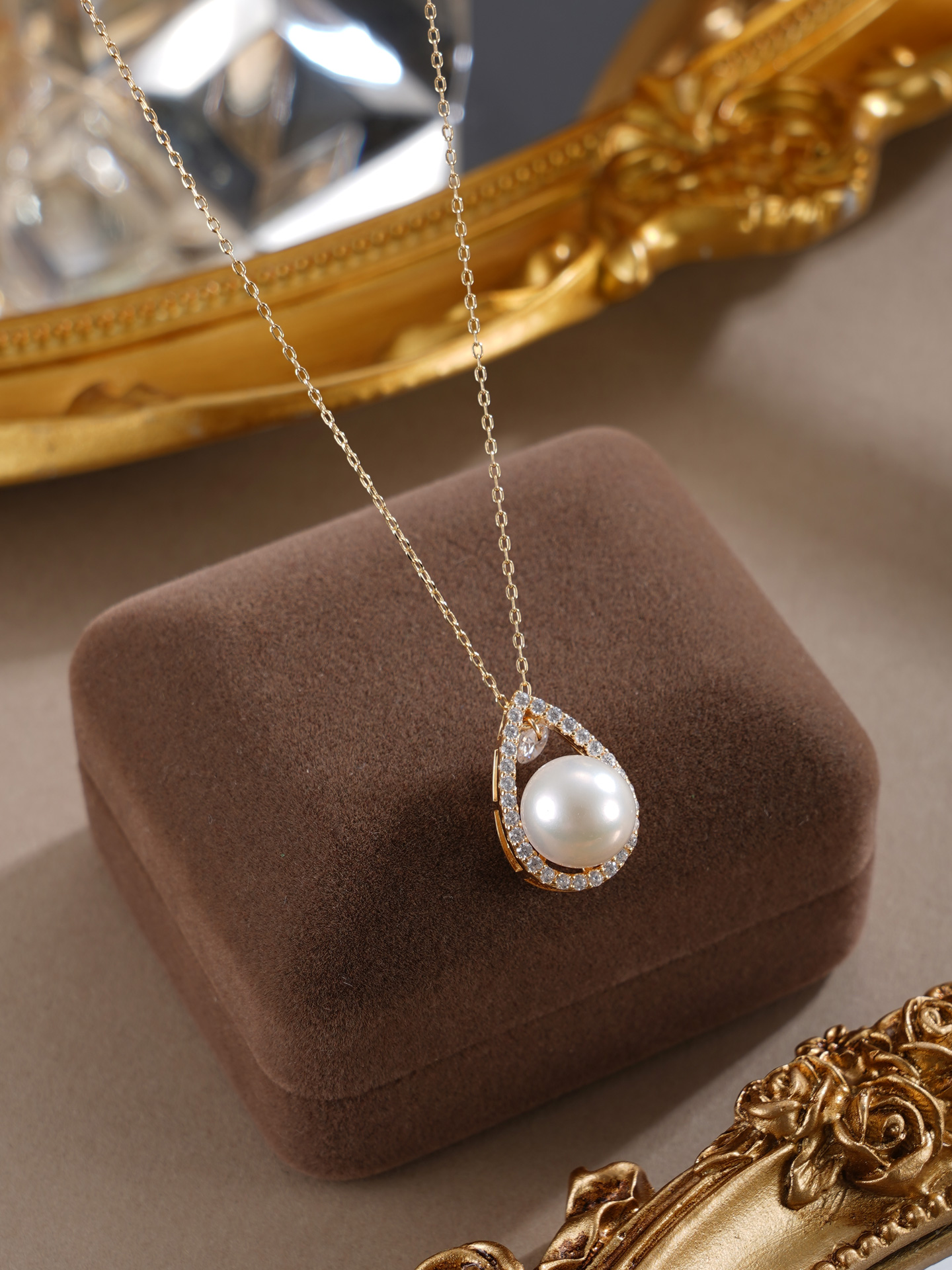 子佩集【露华秋浓】银S925珍珠惜王妃套链【MLTL027】10mm珠镀金水滴2601