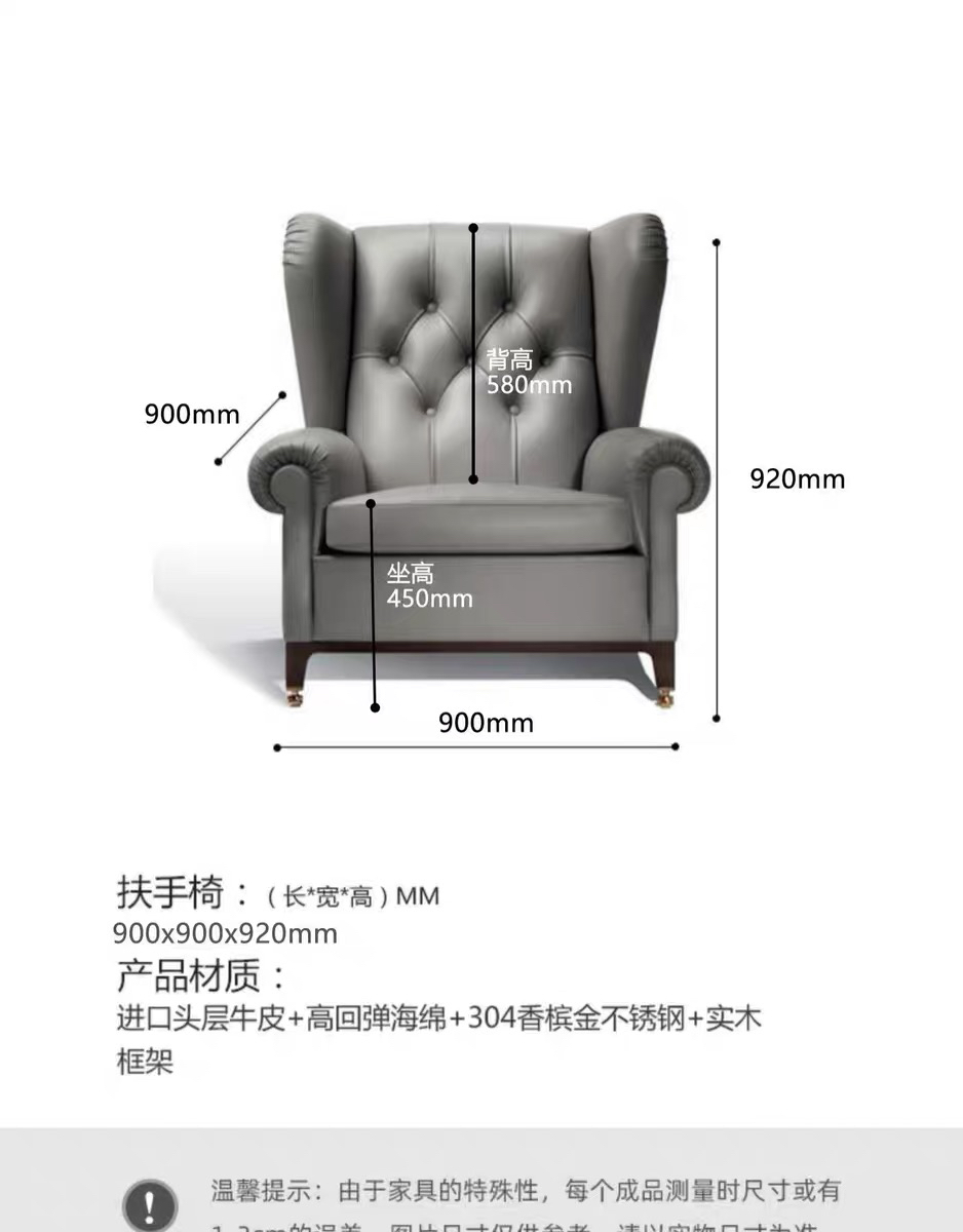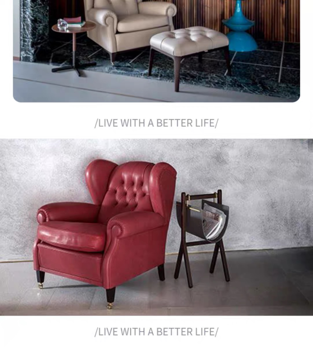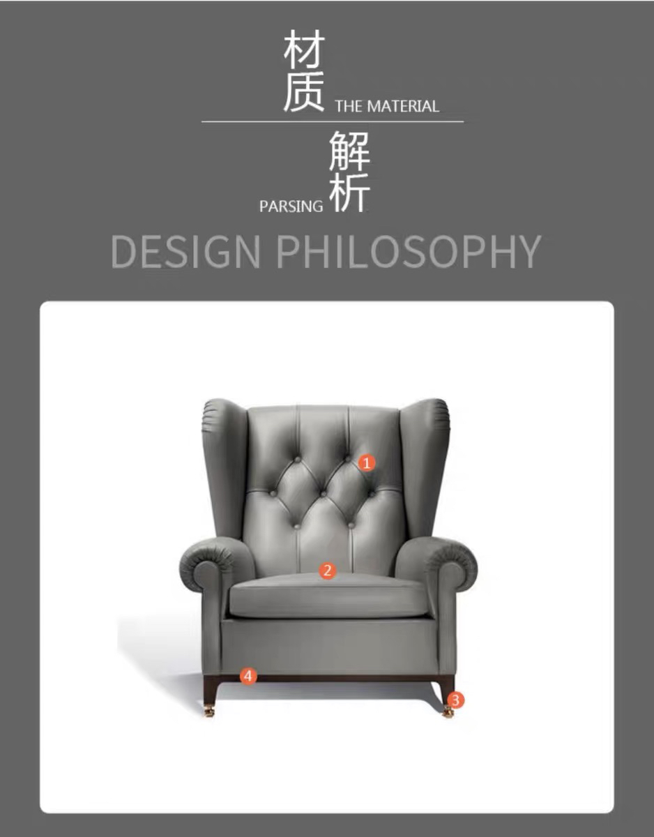 高档别墅房1919雪茄椅全真皮美式老虎椅教父椅单人休闲扶手椅