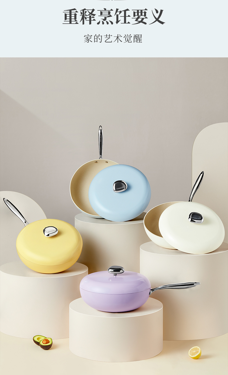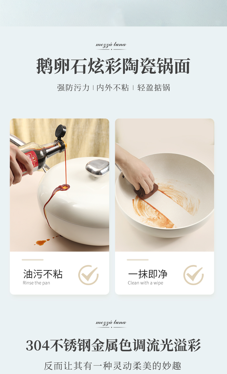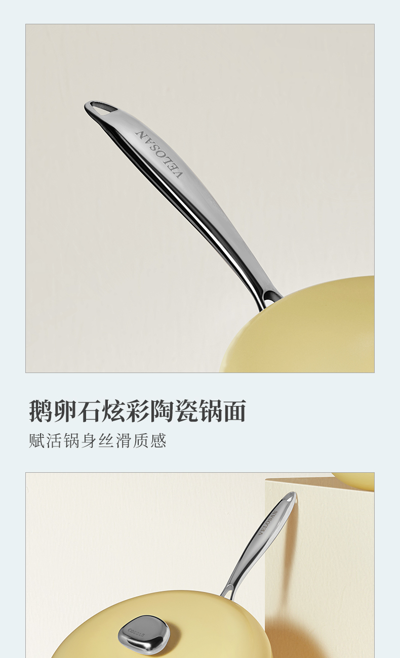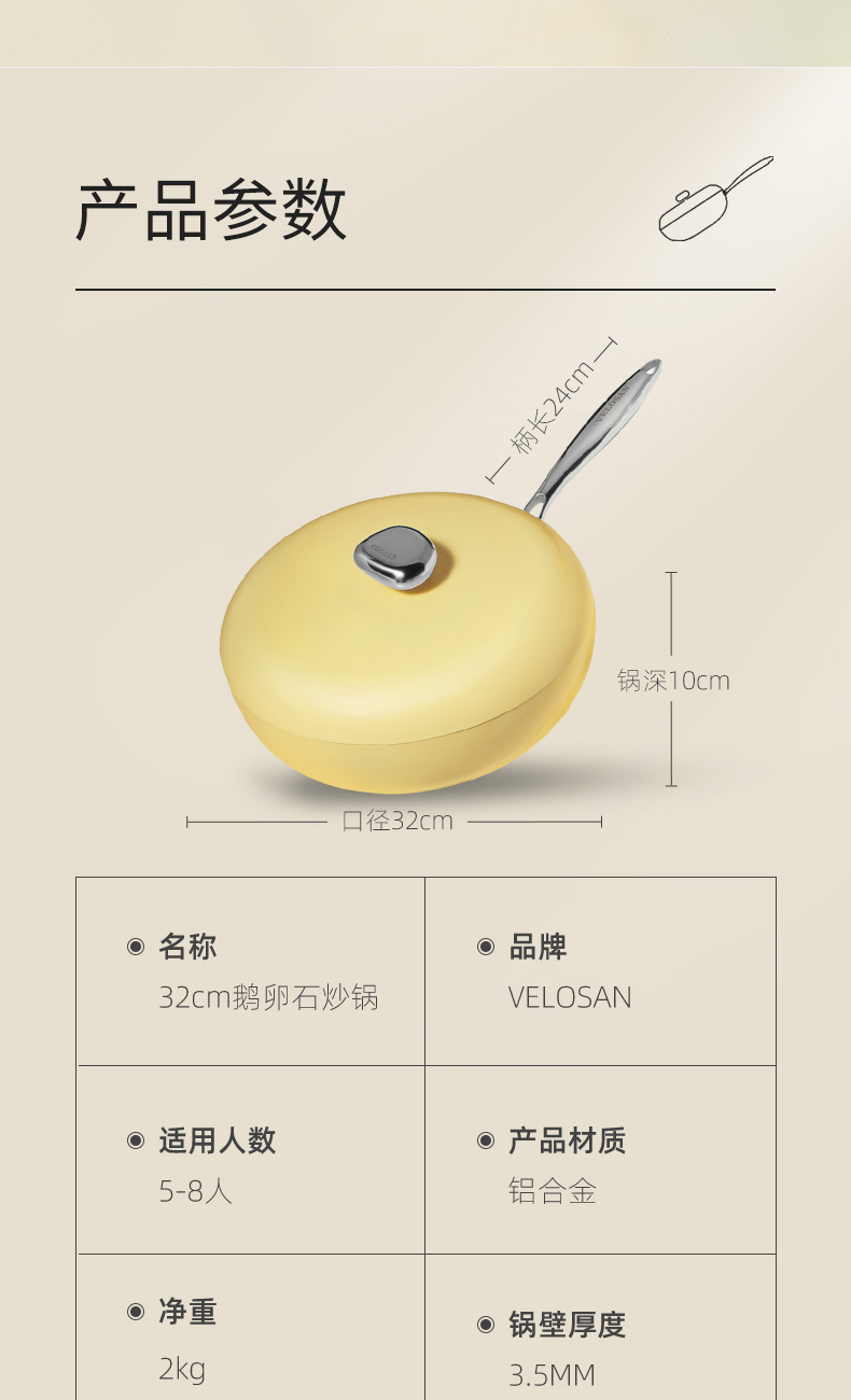velosan鹅卵石炒锅不粘锅家用麦饭石炒菜锅平底电磁炉煤气灶通用