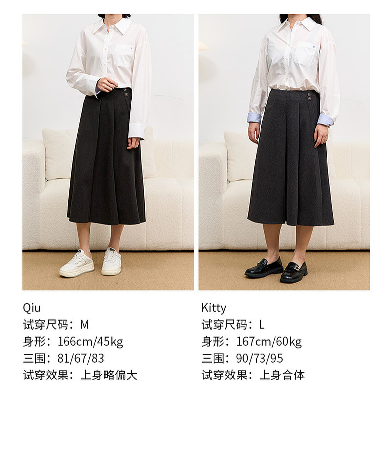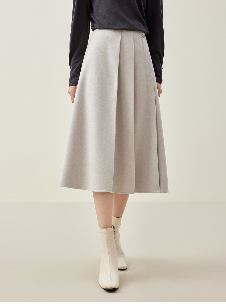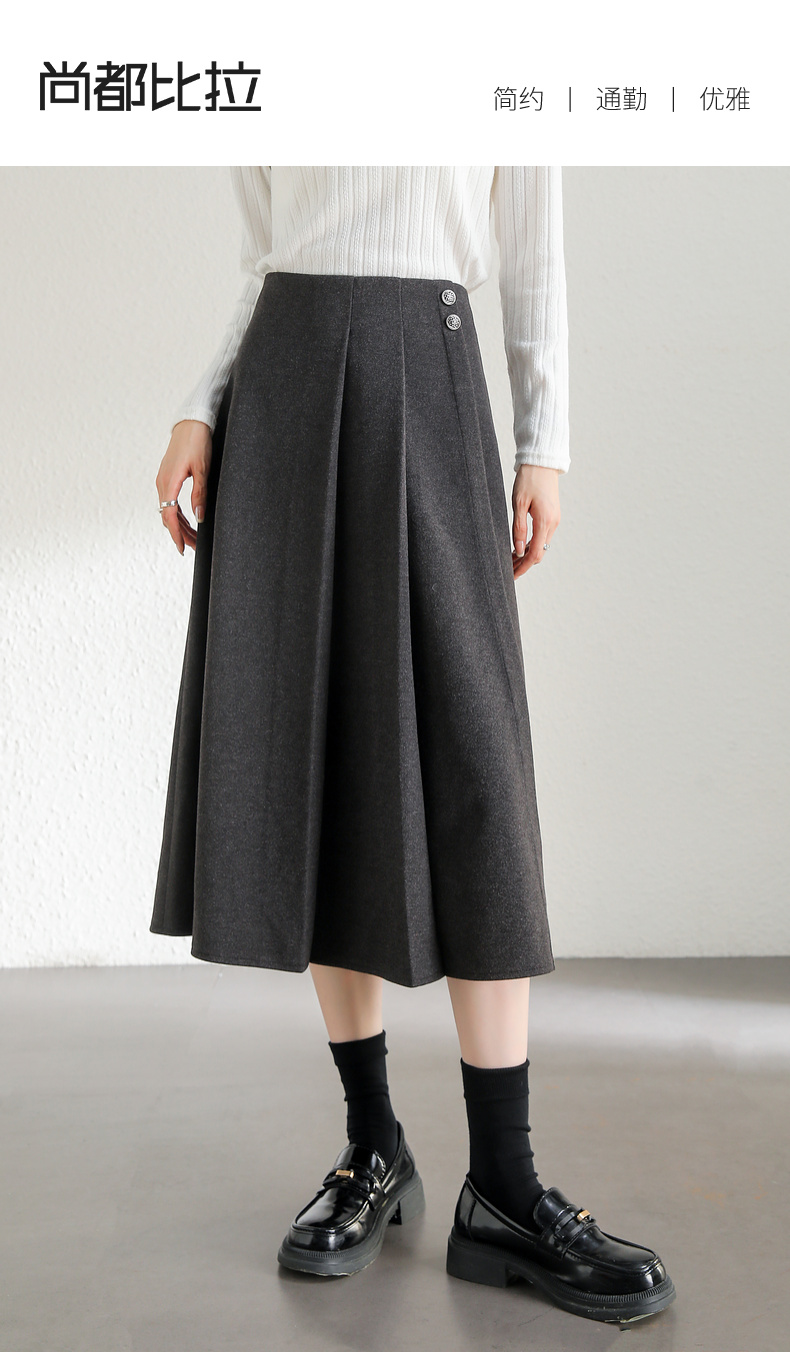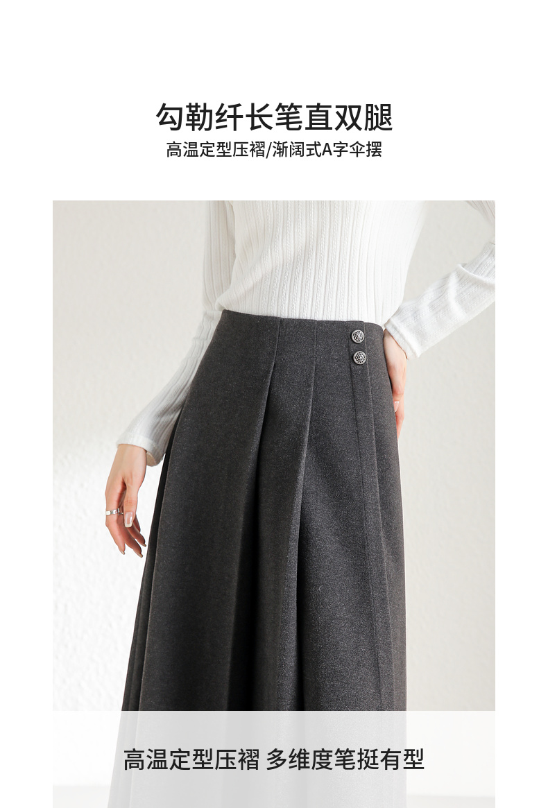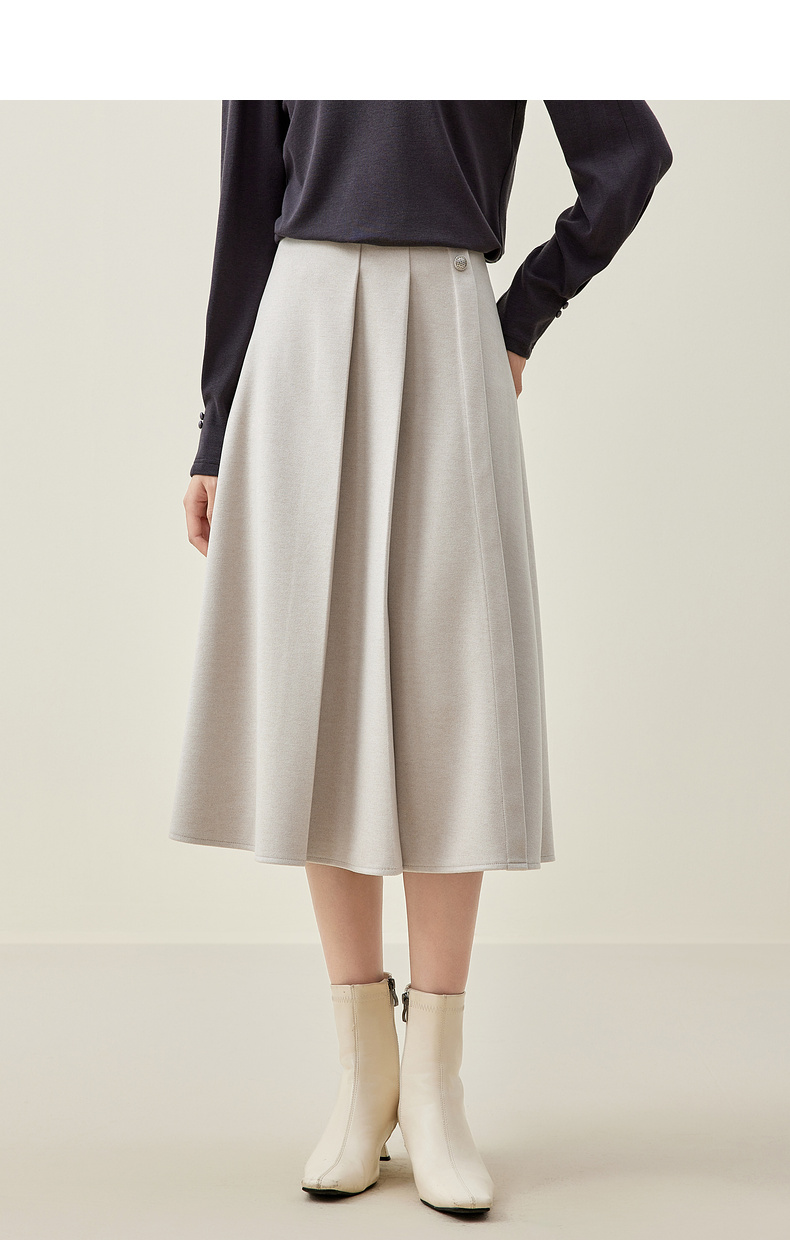【内购】时尚通勤金属扣点缀垂感压褶显瘦半身裙A字百褶裙-144Q57477