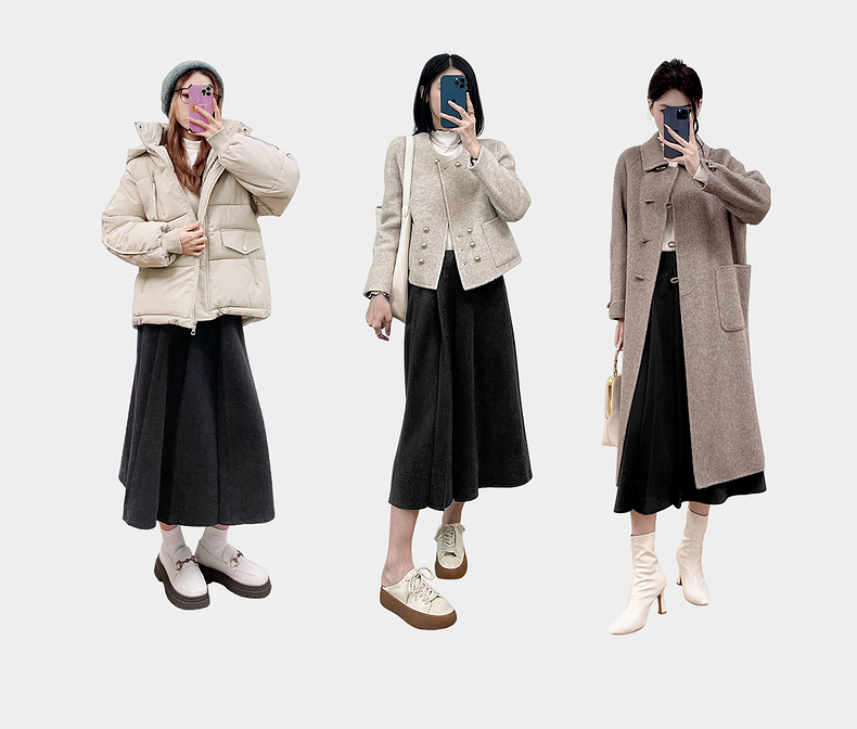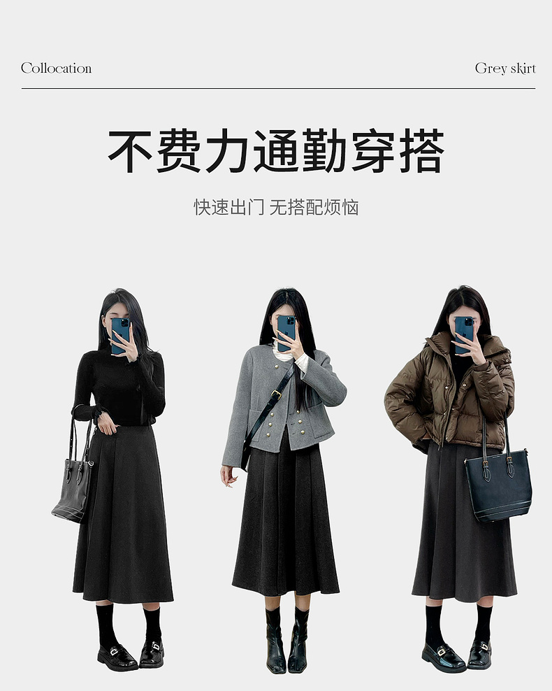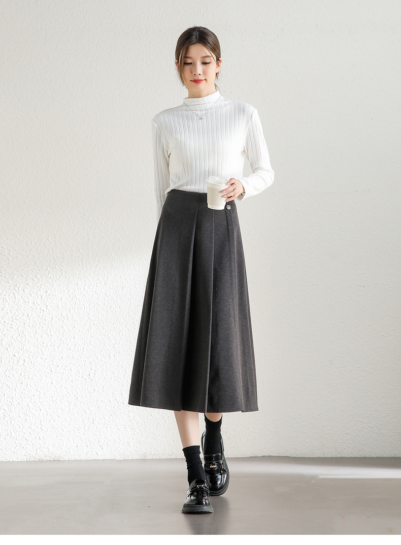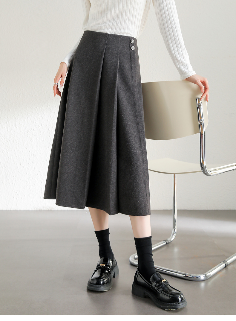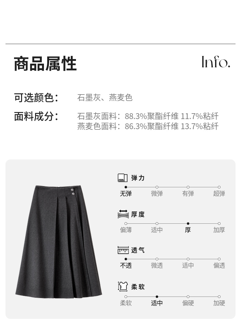 【内购】时尚通勤金属扣点缀垂感压褶显瘦半身裙A字百褶裙-144Q57477