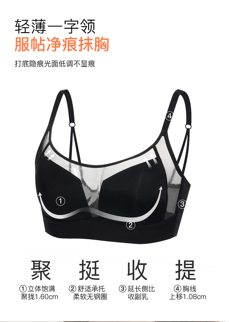 【7.5折限时特惠】【B/C通用杯】【秀黛】新构想无钢圈薄杯文胸莫代尔轻薄一字领万能杯柔软无钢圈打底隐痕文胸W5110012T【门店同款】