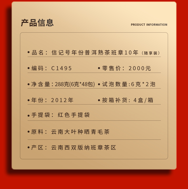 八马信记号 | 普洱熟茶 信记号年份普洱熟茶班章10年(尊享装)C1495