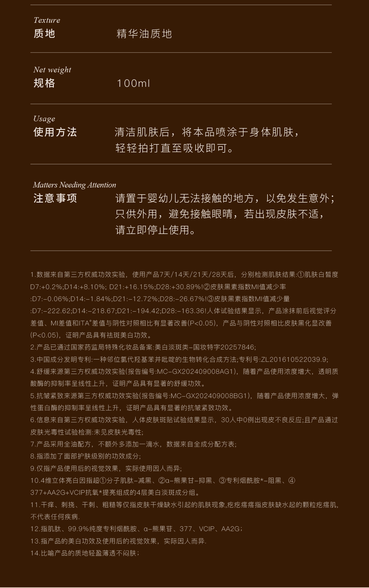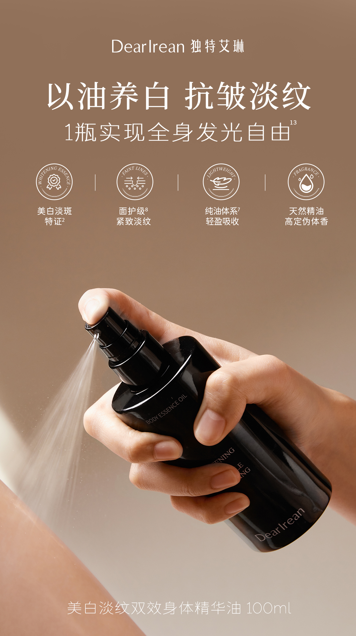【云优选】独特艾琳 注白油 美白身体油喷雾紧致滋润抗皱精华油新品(拆封后不支持7天无理由退货,介意慎拍)