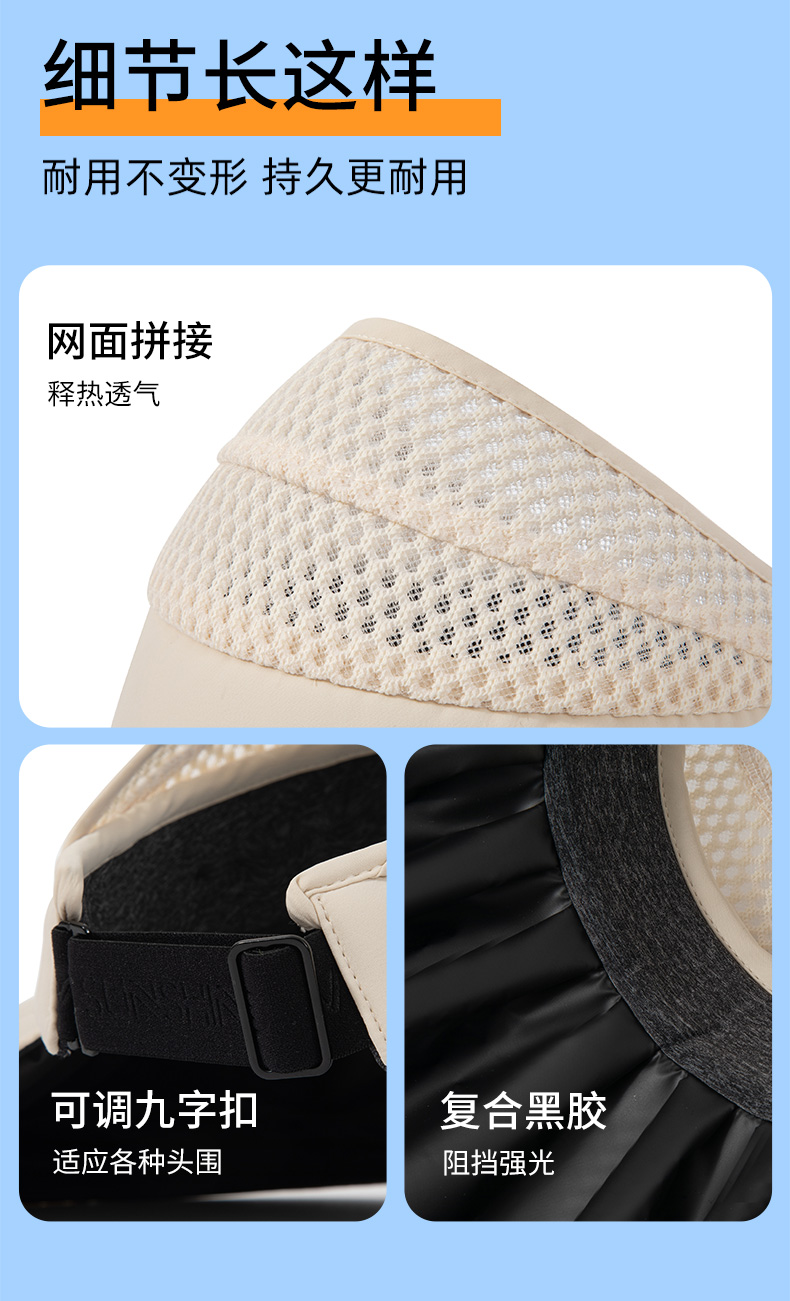 vvc空顶防晒帽遮阳渔夫帽太阳帽子女款夏季遮脸防紫外线男大帽檐