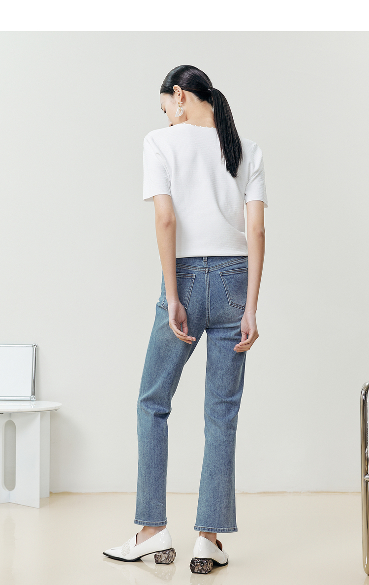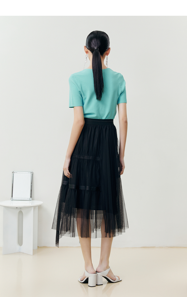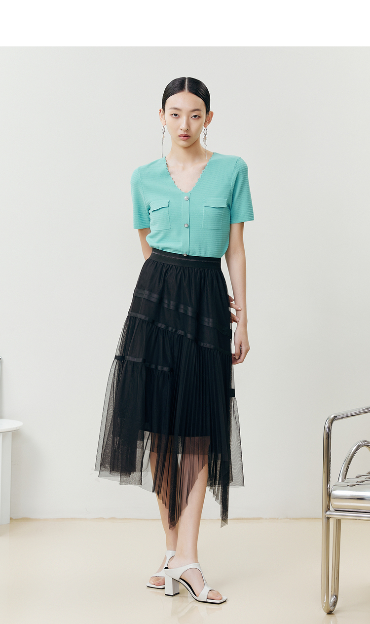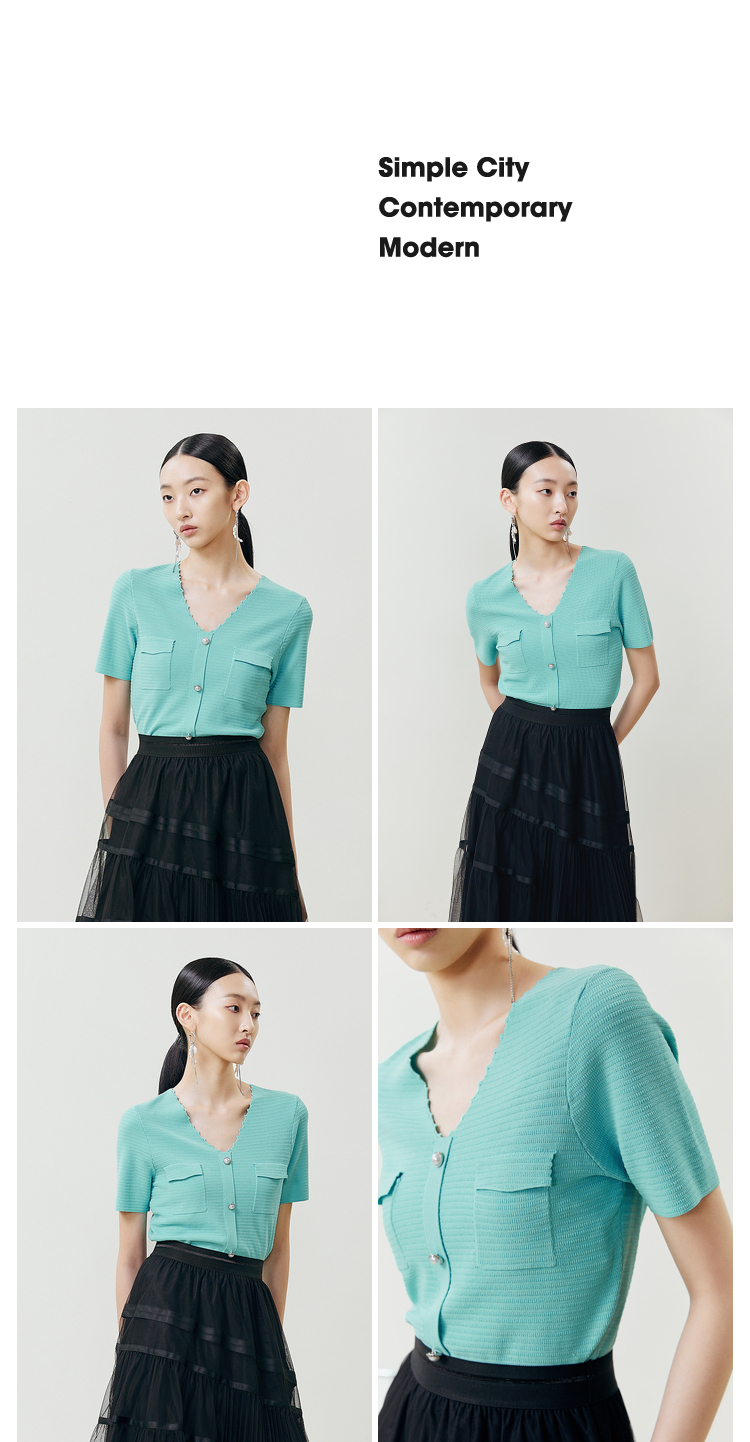 NEELLY纳俪商场同款气质波浪V领针织衫女珍珠扣修身上衣夏季新款N22041A01004