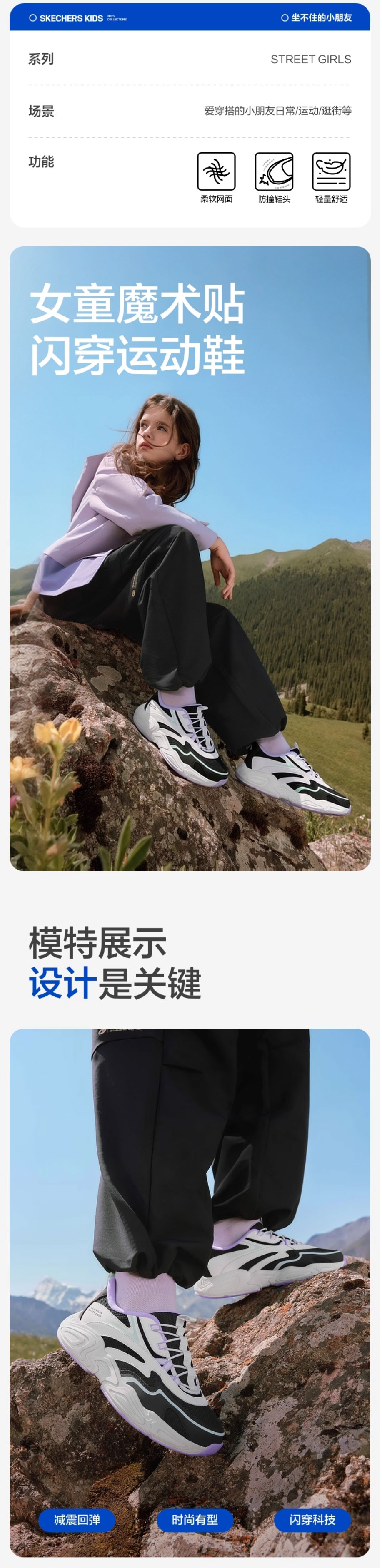Skechers斯凯奇山川闪穿鞋儿童一脚蹬透气运动鞋319426L-BKW