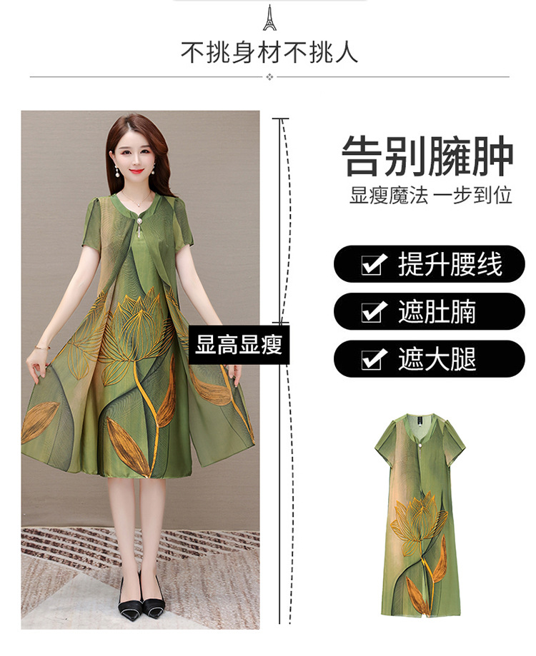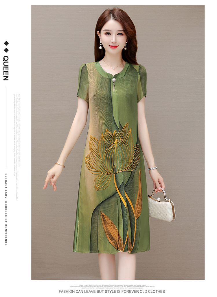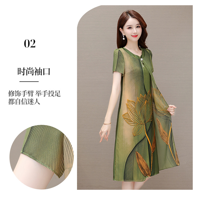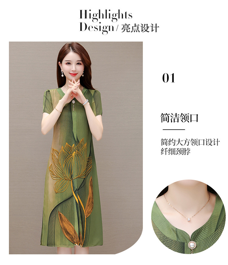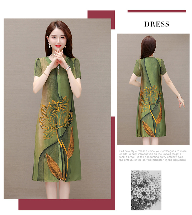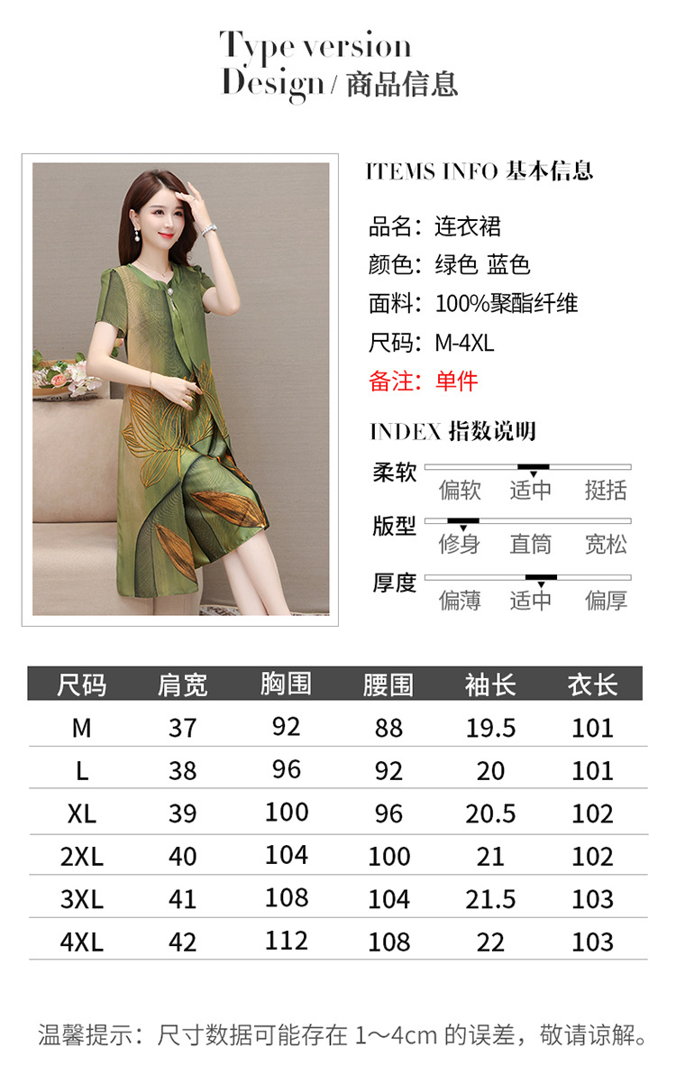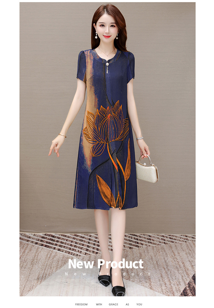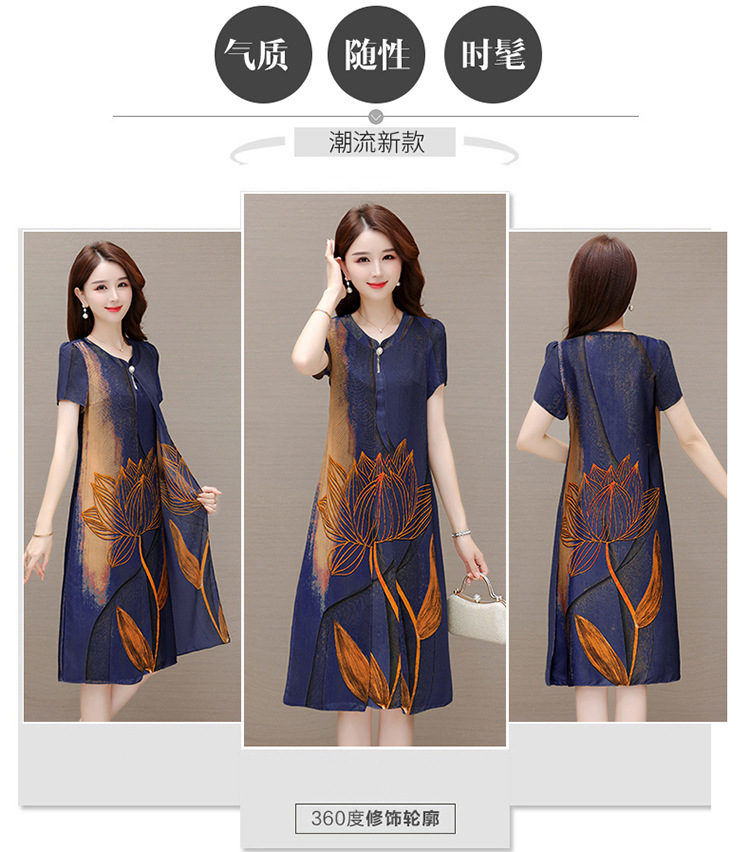 气质通勤,夏款印花中长款修身时尚雪纺裙圆领短袖连衣裙QYM-XQD-59B2339-L