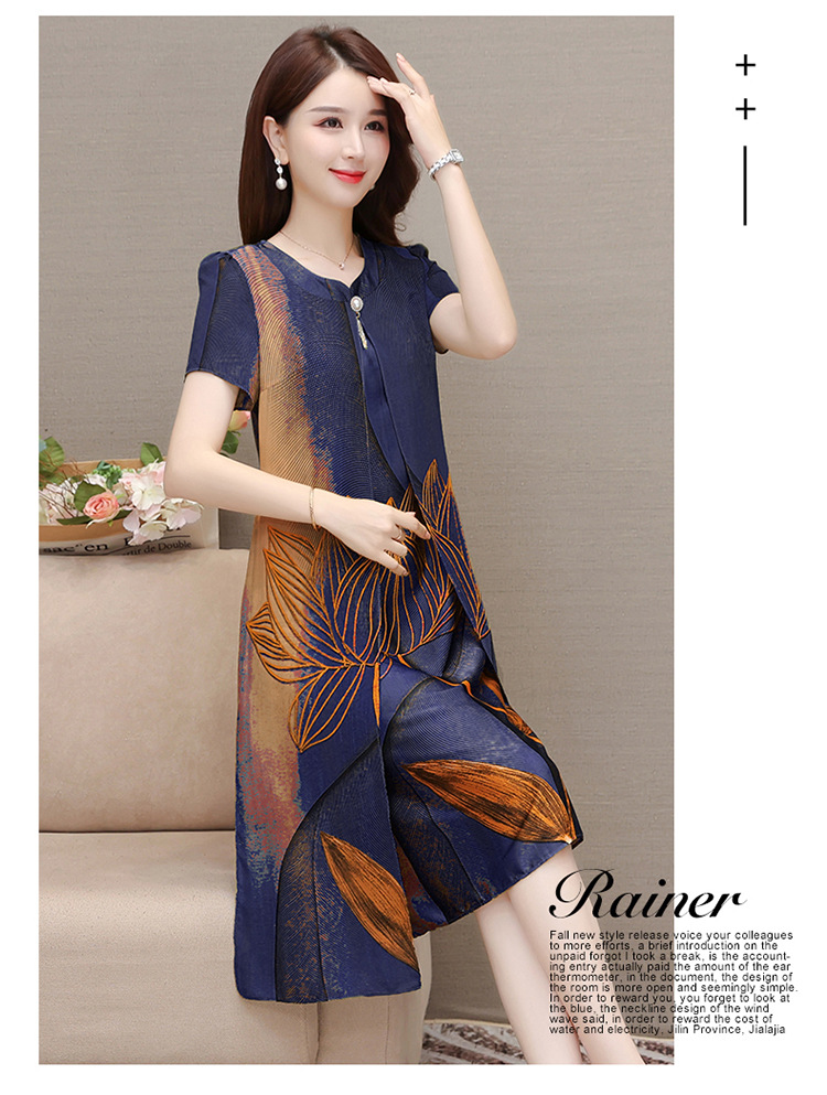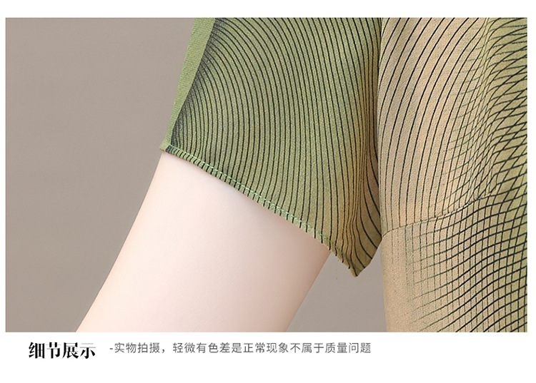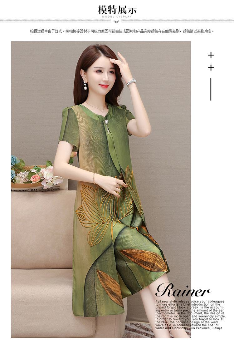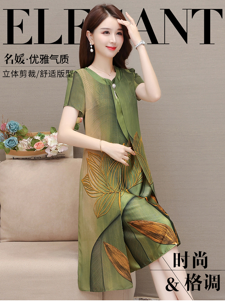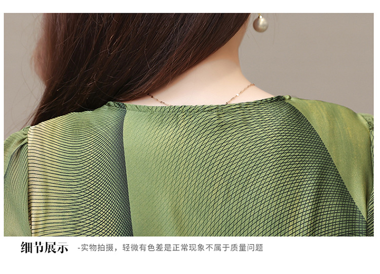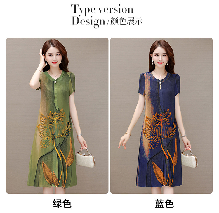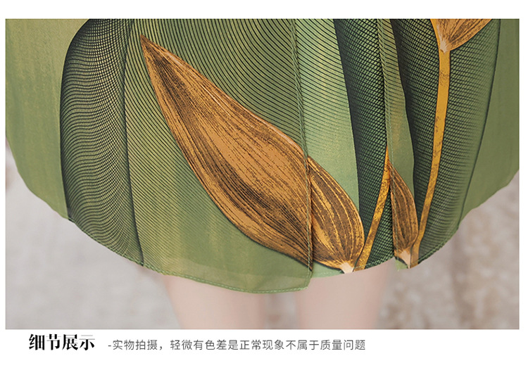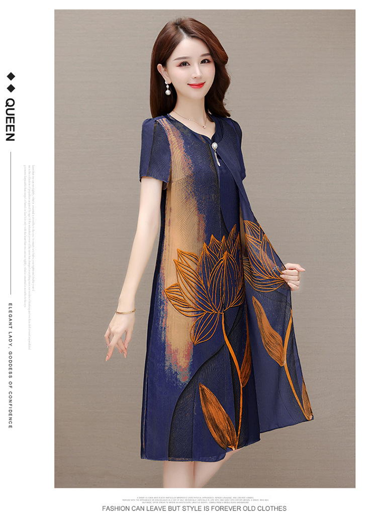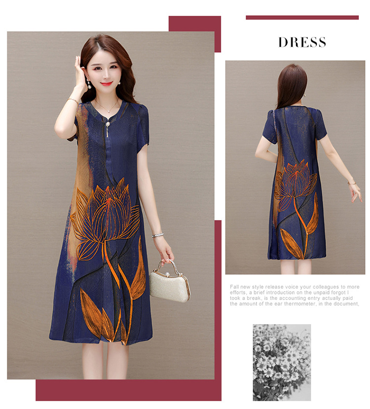 气质通勤,夏款印花中长款修身时尚雪纺裙圆领短袖连衣裙QYM-XQD-59B2339-L