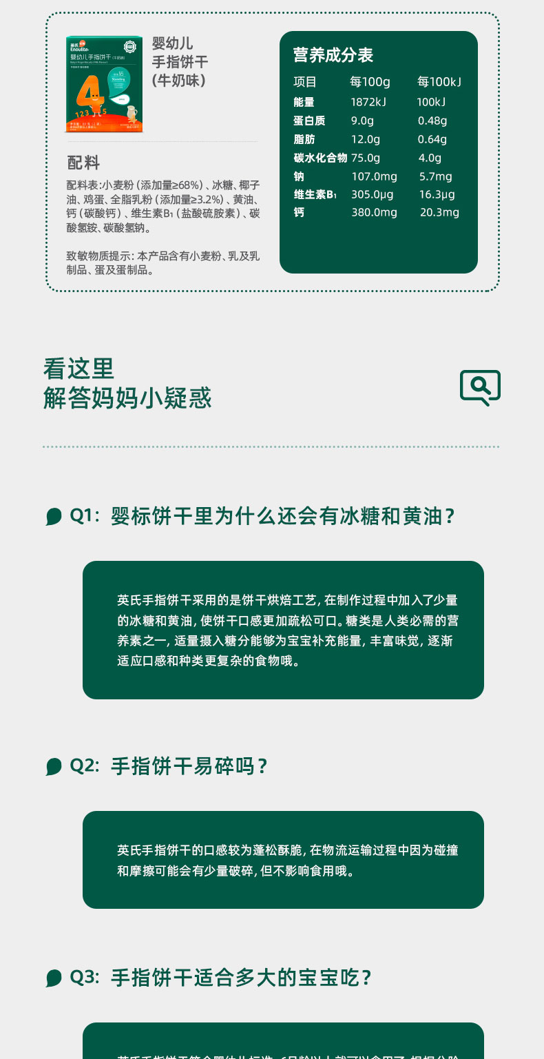 【进阶专区】英氏4阶婴幼儿手指饼干牛奶味2盒