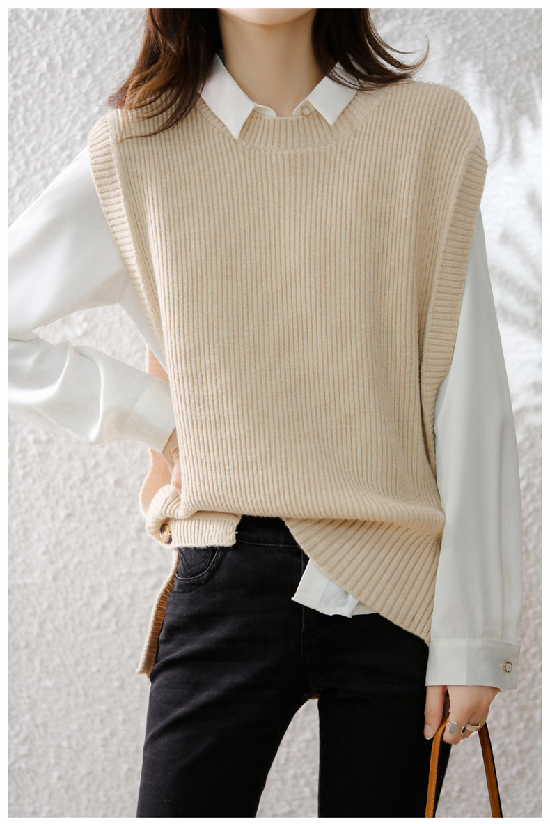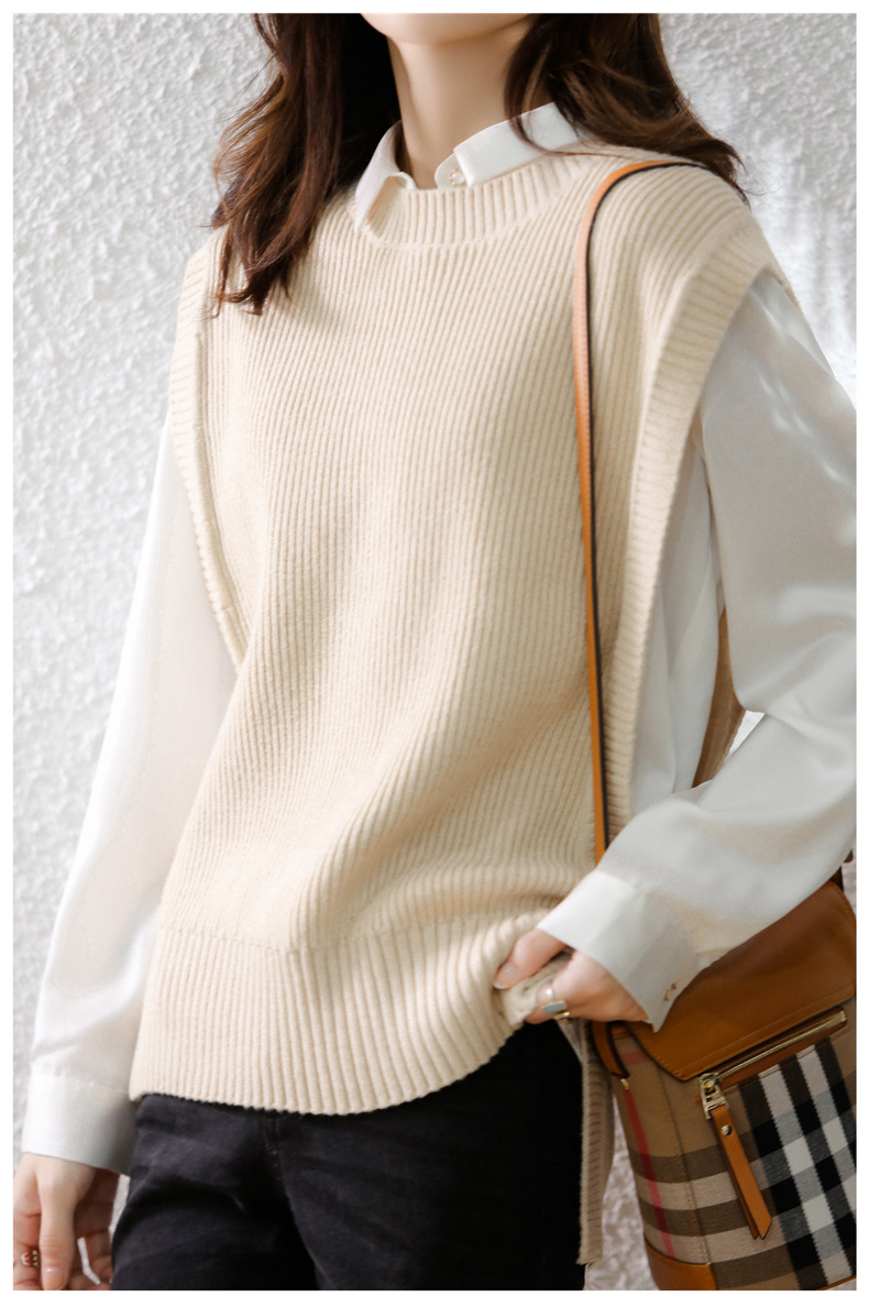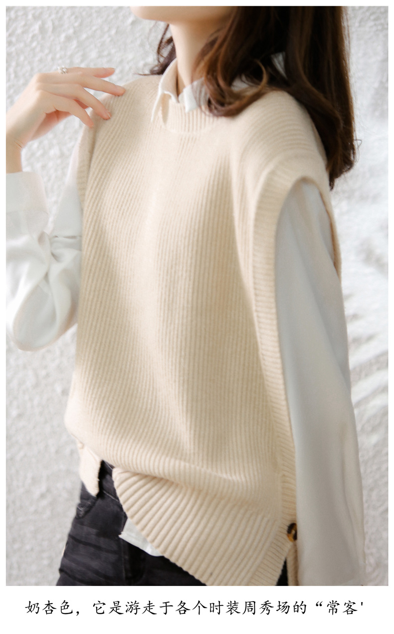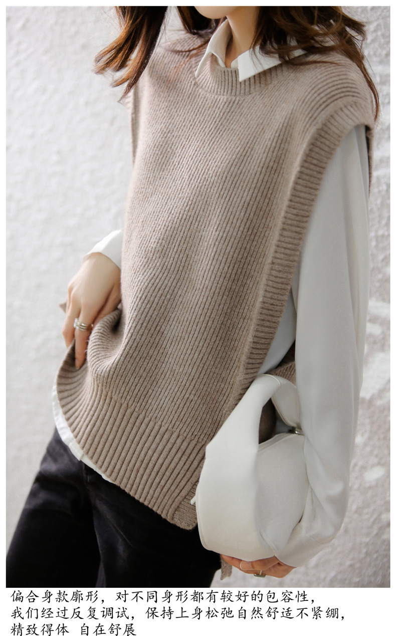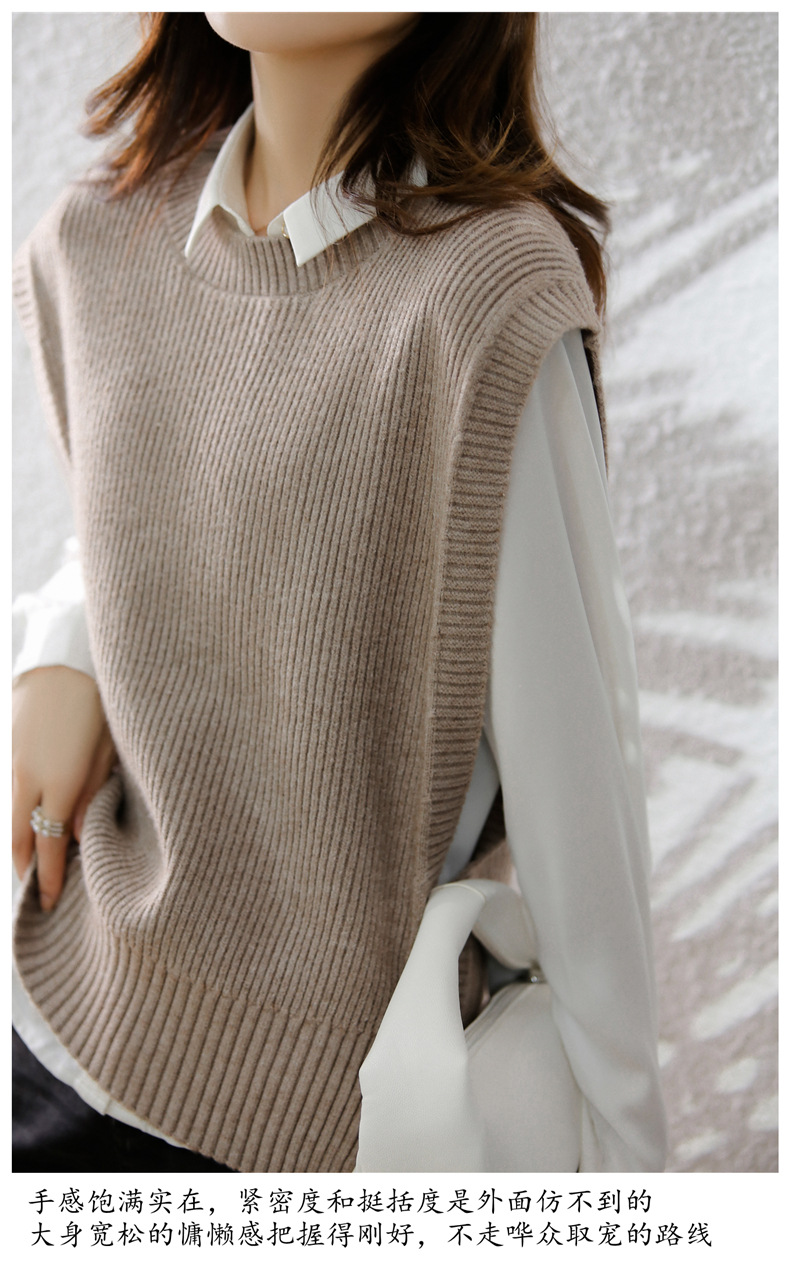 春秋款【马甲背心外套 羊毛针织坎肩女士】毛衣外搭 圆领宽松 春秋马夹外穿